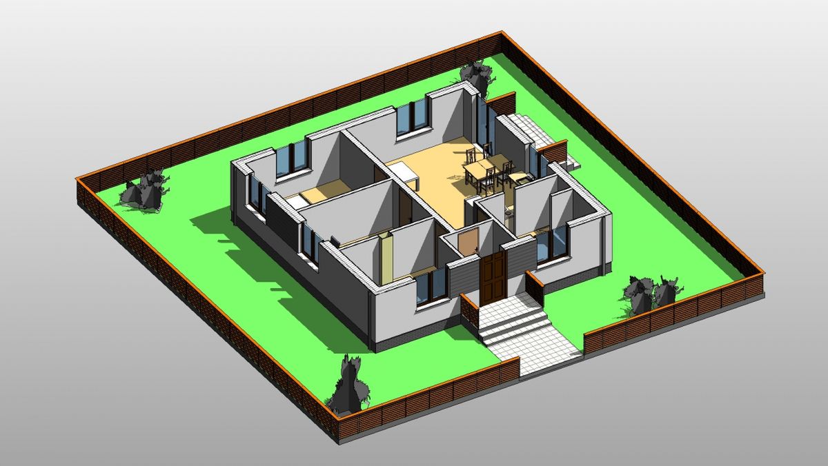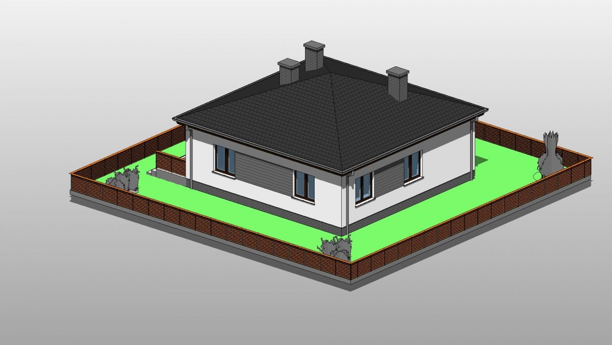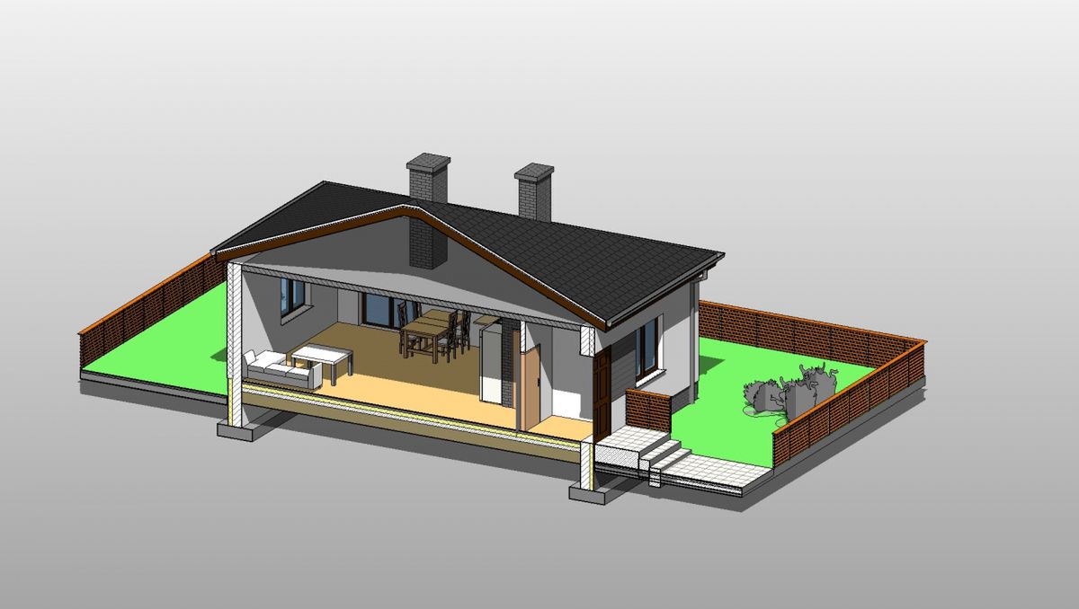 Ściany zewnętrzne: silka 24 cm + styropian 15 cm. Strop: drewniany. Ogrzewanie: dowolne źródło ciepła. Dach: dachówka ceramiczna.