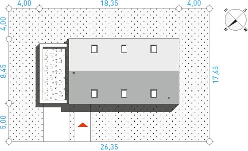 Konstrukcja: zgodna z normami EUROKOD. Fundamenty: tradycyjne ławy i stopy żelbetowe. Ściany: bloczek silikatowy + styropian na etapie adaptacji można zamienić na inny materiał o tej samej wytrzymałości na ściskanie 10-15 MPa, np. pustak ceramiczny. Elewacja: tynk, na fragmentach elewacji deska kompozytowa materiał dodatkowy podkreślający podziały elewacji, taki jak deska kompozytowa można zamienić na inny, np. drewno. Stropy: żelbetowe wylewane na etapie adaptacji istnieje możliwość zmiany na stropy gęstożebrowe. Schody: żelbetowe konstrukcja schodów oraz materiały wykończeniowe przewidziane do indywidualnej aranżacji. Możesz skorzystać z usług naszego partnera. Formularz dostępny w zakładce „kosztorys” Dach: dachówka ceramiczna lub cementowa konstrukcja więźby przewidziana pod pokrycie ciężkie dla I strefy wiatrowej i II strefy śniegowej.