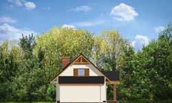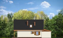 Graficzne opracowanie rzutów poglądowych widocznych na karcie projektu zostało wykonane przez Extradom.pl. Prezentowane przez Extradom.pl wizualizacje wykonane zostały przez autora projektu i należy poczytywać je jedynie za przykład i propozycję wykończenia, wizję architektoniczną autora projektu. Ostateczne wykończenie budynku może nastąpić na wiele sposobów. Szczegółowe rozwiązania zastosowane w oferowanej dokumentacji - w tym również ilość, lokalizacje i wygląd okien, drzwi, kominów - mogą w niewielkim stopniu różnić się od prezentowanej wizualizacji budynku.