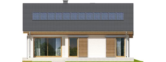 Graficzne opracowanie rzutów poglądowych widocznych na karcie projektu zostało wykonane przez Extradom.pl. Prezentowane przez Extradom.pl wizualizacje wykonane zostały przez autora projektu i należy poczytywać je jedynie za przykład i propozycję wykończenia, wizję architektoniczną autora projektu. Ostateczne wykończenie budynku może nastąpić na wiele sposobów. Szczegółowe rozwiązania zastosowane w oferowanej dokumentacji - w tym również ilość, lokalizacje i wygląd okien, drzwi, kominów - mogą w niewielkim stopniu różnić się od prezentowanej wizualizacji budynku.
