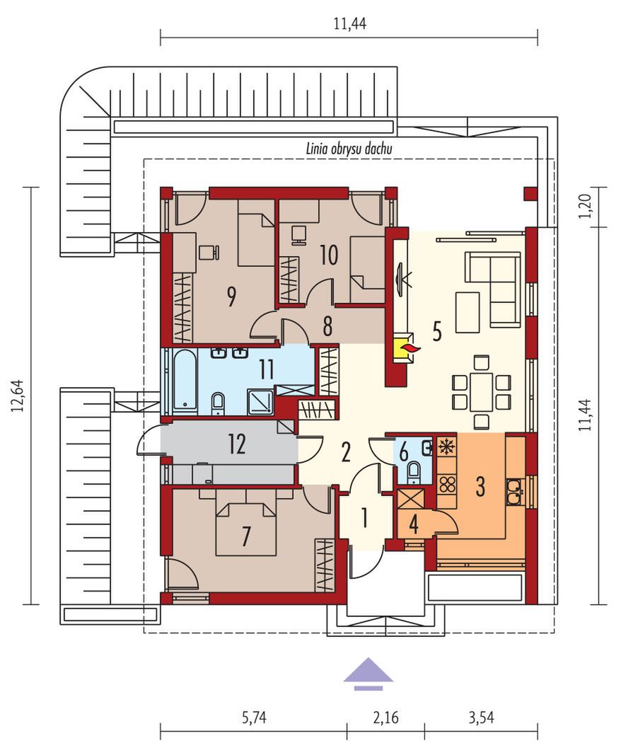 Graficzne opracowanie rzutów poglądowych widocznych na karcie projektu zostało wykonane przez Extradom.pl. Prezentowane przez Extradom.pl wizualizacje wykonane zostały przez autora projektu i należy poczytywać je jedynie za przykład i propozycję wykończenia, wizję architektoniczną autora projektu. Ostateczne wykończenie budynku może nastąpić na wiele sposobów. Szczegółowe rozwiązania zastosowane w oferowanej dokumentacji - w tym również ilość, lokalizacje i wygląd okien, drzwi, kominów - mogą w niewielkim stopniu różnić się od prezentowanej wizualizacji budynku.