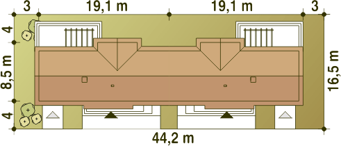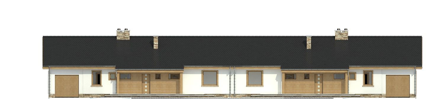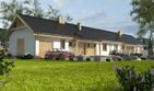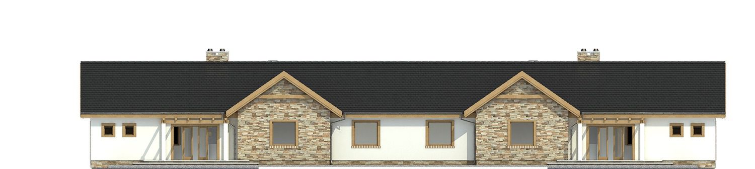 Graficzne opracowanie rzutów poglądowych widocznych na karcie projektu zostało wykonane przez Extradom.pl. Prezentowane przez Extradom.pl wizualizacje wykonane zostały przez autora projektu i należy poczytywać je jedynie za przykład i propozycję wykończenia, wizję architektoniczną autora projektu. Ostateczne wykończenie budynku może nastąpić na wiele sposobów. Szczegółowe rozwiązania zastosowane w oferowanej dokumentacji - w tym również ilość, lokalizacje i wygląd okien, drzwi, kominów - mogą w niewielkim stopniu różnić się od prezentowanej wizualizacji budynku.