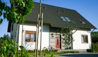 Ściany zewnętrzne: murowane, dwuwarstwowe, beton komórkowy firmy Ytong 24 cm, ocieplenie wełna mineralna 12 cm. Ściany wewnętrzne: nośne i działowe murowane, cegła wapienno-piaskowa 24 cm i 12 cm. Strop: międzypiętrowy, gęstożebrowy Teriva. Dach: konstrukcja drewniana, ocieplenie wełna mineralna Isover 28 cm, dachówka ceramiczna firmy Röben. Ogrzewanie: kocioł gazowy kondensacyjny firmy Viessmann, rozprowadzenie ciepła: grzejniki firmy Purmo. Wentylacja: grawitacyjna. OZE: kolektory słoneczne firmy Viessmann. Dodatkowo: stacja uzdatniania wody firmy Viessmann. Elewacje: tynk mineralny cienkowarstwowy i okładzina drewniana. Stolarka: drewniana,PCV lub aluminiowa, rolety zewnętrzne naokienne w systemie CleverBox firmy BeClever., drzwi wewnętrzne i wejściowe firmy Hörmann. Okna połaciowe: rozwiązania technologiczne firmy Velux Otocznenie: System tarasowy ProDeck - deska kompozytowa Terra w kolorze kasztan.