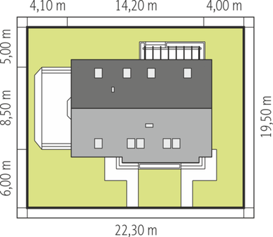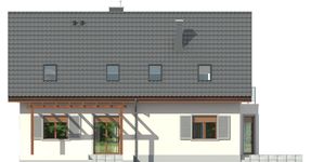 Graficzne opracowanie rzutów poglądowych widocznych na karcie projektu zostało wykonane przez Extradom.pl. Prezentowane przez Extradom.pl wizualizacje wykonane zostały przez autora projektu i należy poczytywać je jedynie za przykład i propozycję wykończenia, wizję architektoniczną autora projektu. Ostateczne wykończenie budynku może nastąpić na wiele sposobów. Szczegółowe rozwiązania zastosowane w oferowanej dokumentacji - w tym również ilość, lokalizacje i wygląd okien, drzwi, kominów - mogą w niewielkim stopniu różnić się od prezentowanej wizualizacji budynku.
