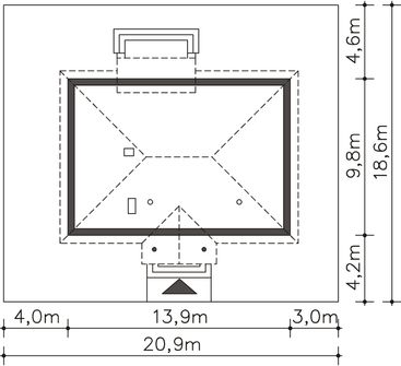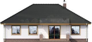 Graficzne opracowanie rzutów poglądowych widocznych na karcie projektu zostało wykonane przez Extradom.pl. Prezentowane przez Extradom.pl wizualizacje wykonane zostały przez autora projektu i należy poczytywać je jedynie za przykład i propozycję wykończenia, wizję architektoniczną autora projektu. Ostateczne wykończenie budynku może nastąpić na wiele sposobów. Szczegółowe rozwiązania zastosowane w oferowanej dokumentacji - w tym również ilość, lokalizacje i wygląd okien, drzwi, kominów - mogą w niewielkim stopniu różnić się od prezentowanej wizualizacji budynku.