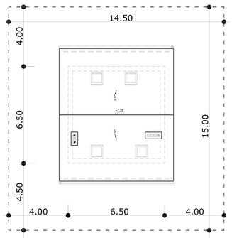Graficzne opracowanie rzutów poglądowych widocznych na karcie projektu zostało wykonane przez Extradom.pl. Prezentowane przez Extradom.pl wizualizacje wykonane zostały przez autora projektu i należy poczytywać je jedynie za przykład i propozycję wykończenia, wizję architektoniczną autora projektu. Ostateczne wykończenie budynku może nastąpić na wiele sposobów. Szczegółowe rozwiązania zastosowane w oferowanej dokumentacji - w tym również ilość, lokalizacje i wygląd okien, drzwi, kominów - mogą w niewielkim stopniu różnić się od prezentowanej wizualizacji budynku.