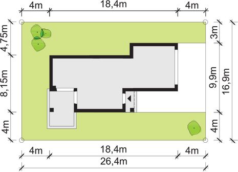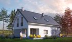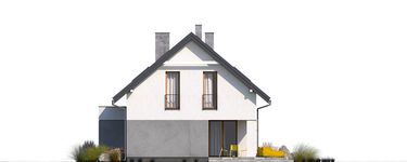 Graficzne opracowanie rzutów poglądowych widocznych na karcie projektu zostało wykonane przez Extradom.pl. Prezentowane przez Extradom.pl wizualizacje wykonane zostały przez autora projektu i należy poczytywać je jedynie za przykład i propozycję wykończenia, wizję architektoniczną autora projektu. Ostateczne wykończenie budynku może nastąpić na wiele sposobów. Szczegółowe rozwiązania zastosowane w oferowanej dokumentacji - w tym również ilość, lokalizacje i wygląd okien, drzwi, kominów - mogą w niewielkim stopniu różnić się od prezentowanej wizualizacji budynku.