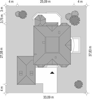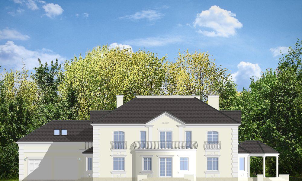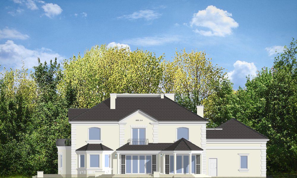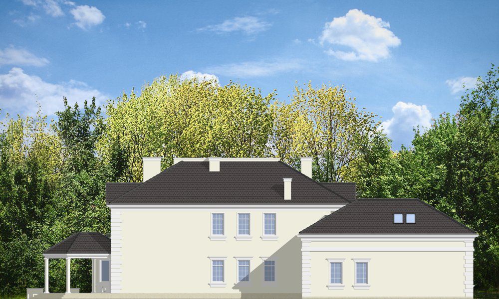 Graficzne opracowanie rzutów poglądowych widocznych na karcie projektu zostało wykonane przez Extradom.pl. Prezentowane przez Extradom.pl wizualizacje wykonane zostały przez autora projektu i należy poczytywać je jedynie za przykład i propozycję wykończenia, wizję architektoniczną autora projektu. Ostateczne wykończenie budynku może nastąpić na wiele sposobów. Szczegółowe rozwiązania zastosowane w oferowanej dokumentacji - w tym również ilość, lokalizacje i wygląd okien, drzwi, kominów - mogą w niewielkim stopniu różnić się od prezentowanej wizualizacji budynku.
