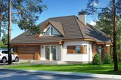 Przed podjęciem ostatecznej decyzji przeglądnęliśmy naprawdę wiele różnych projektów, a spośród nich najbardziej do gustu przypadł nam projekt domu parterowego z poddaszem użytkowym Reksio 2g BSB1080. Największą uwagę przy wyborze zwracaliśmy na przewidziany wewnątrz układ pomieszczeń, który w tym przypadku jest dokładnie taki jaki, na jakim nam zależało. Oprócz funkcjonalnego rozmieszczenia pokoi, spodobało nam się to, iż przestrzeń użytkowa została maksymalnie wykorzystana. Duży wpływ na naszą decyzję miał również optymalny metraż, ponieważ od początku szukaliśmy domu o powierzchni do 120 m². Na szczęście podczas naszej realizacji nie natrafiliśmy na żadne problemy, a wykonawcy nie zgłaszali błędów w projekcie. Wszystko odbyło się sprawnie i zgodnie z planem. Postawienie i całościowe wykończenie domu przebiegło w błyskawicznym tempie, gdyż wprowadziliśmy się do niego zaledwie po 9 miesiącach od rozpoczęcia pierwszych prac. Budynek został postawiony przy użyciu bloczków z betonu komórkowego Ytong. Zastosowaliśmy te o szerokości ok. 50 cm, dzięki czemu nie musieliśmy dodatkowo ocieplać bryły styropianem. Takie rozwiązanie bardzo dobrze się sprawdza, a dom doskonale utrzymuje temperaturę. Koszty ogrzewania są naprawdę korzystne, tym bardziej iż zdecydowaliśmy się na alternatywne źródło ogrzewania czyli pompę ciepła. Strop, zgodnie z projektem wykonaliśmy w żelbetowej konstrukcji, a dach pokryliśmy dachówką ceramiczną. Do izolacji poddasza zastosowaliśmy natryskową piankę poliuretanową. Sądzę, że architekt poprawnie oszacował koszty postawienia domu na etapie stanu surowego zamkniętego i można się nimi sugerować. Co prawda, z racji zastosowania dosyć kosztownej pianki PUR, realizacja wyniosła nieco więcej, aczkolwiek nie była to duża różnica.Do projektu domu Reksio 2g BSB1080 wprowadziliśmy tylko jedną zmianę. Przewidziany w nim układ pomieszczeń od początku spełniał nasze oczekiwania, więc nie było potrzeby wprowadzania większej ilości modyfikacji. Zrezygnowaliśmy ze ścianki tworzącej gabinet na parterze, co pozwoliło nam na uzyskanie bardzo przestronnego salonu o sporych rozmiarach. Teraz być może zastanowiłbym się jedynie nad innym rozwiązaniem odnośnie przeszklenia przy drzwiach wejściowych. Co prawda, ten element świetnie się prezentuje, jednak jego wykonanie było nieco kłopotliwe.W nowym domu mieszkamy już dłuższy czas i jesteśmy z niego naprawdę zadowoleni. Układ wnętrza jest wygodny w codziennym użytkowaniu i jest dokładnie taki jakiego oczekiwałem. Muszę przyznać, że architekt doskonale przemyślał wykorzystanie powierzchni. Ciągi komunikacyjne (halle i korytarze) zostały ograniczone do optymalnego minimum, dzięki czemu przestrzeń użytkowa wykorzystana jest w stu procentach. Wszystko to na czym nam zależało, znaleźliśmy w projekcie domu Reksio 2g BSB1080. Pozdrawiam.