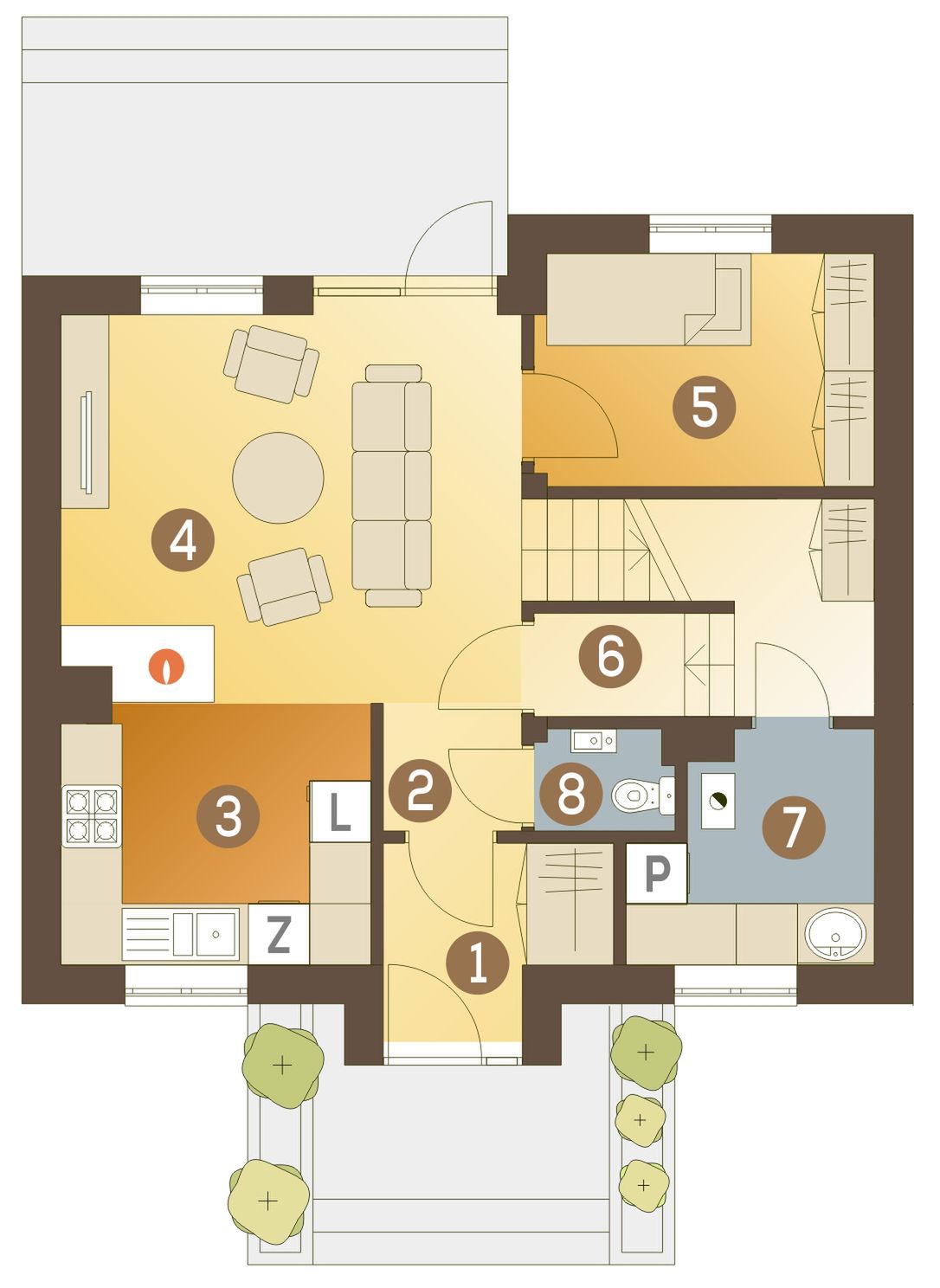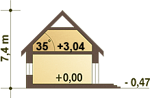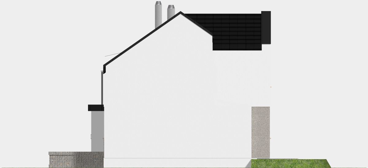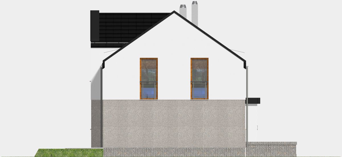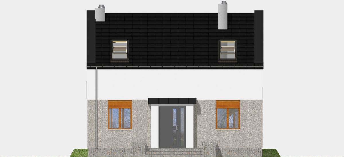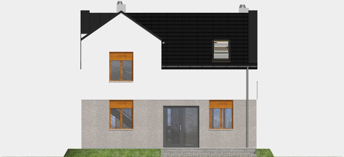 Graficzne opracowanie rzutów poglądowych widocznych na karcie projektu zostało wykonane przez Extradom.pl. Prezentowane przez Extradom.pl wizualizacje wykonane zostały przez autora projektu i należy poczytywać je jedynie za przykład i propozycję wykończenia, wizję architektoniczną autora projektu. Ostateczne wykończenie budynku może nastąpić na wiele sposobów. Szczegółowe rozwiązania zastosowane w oferowanej dokumentacji - w tym również ilość, lokalizacje i wygląd okien, drzwi, kominów - mogą w niewielkim stopniu różnić się od prezentowanej wizualizacji budynku.