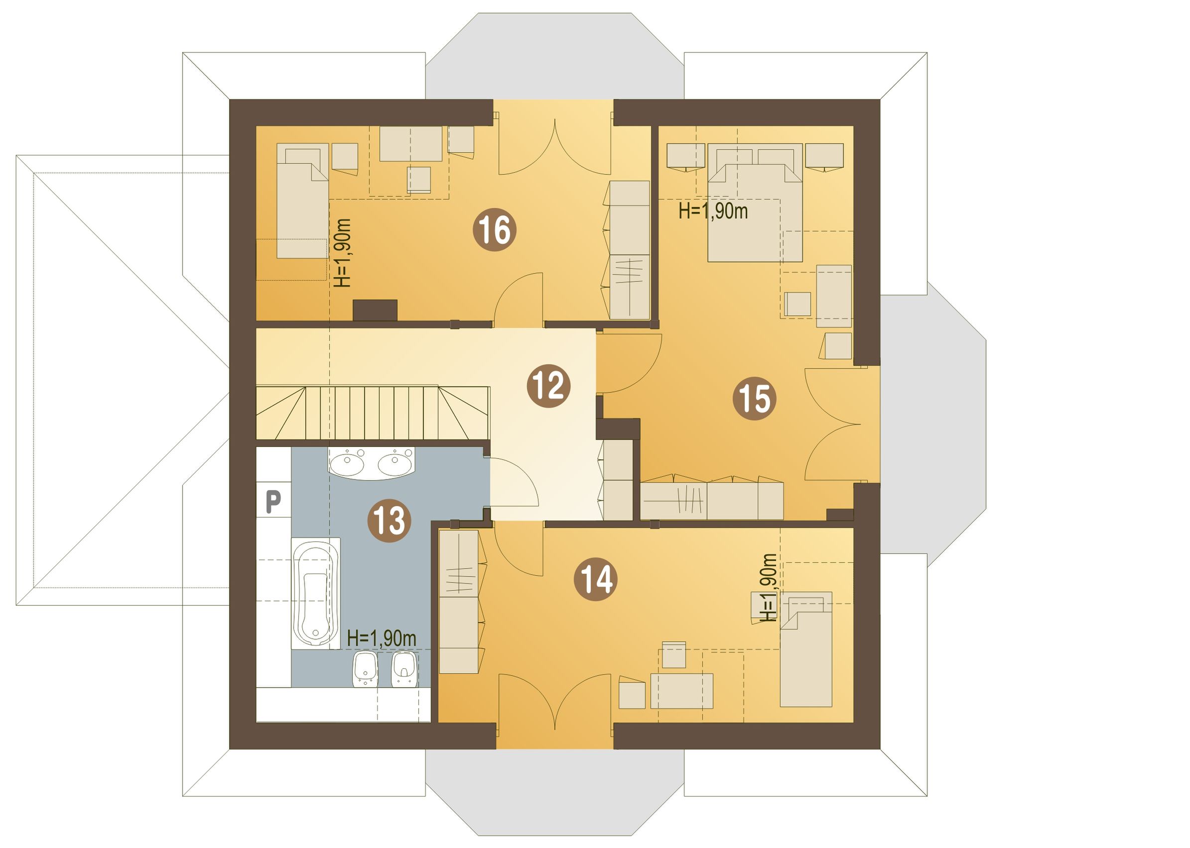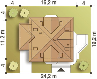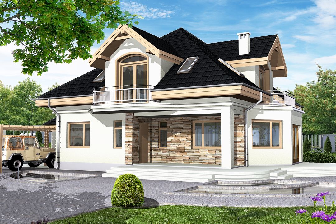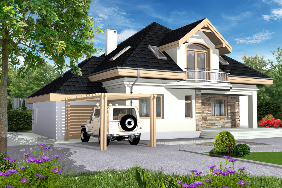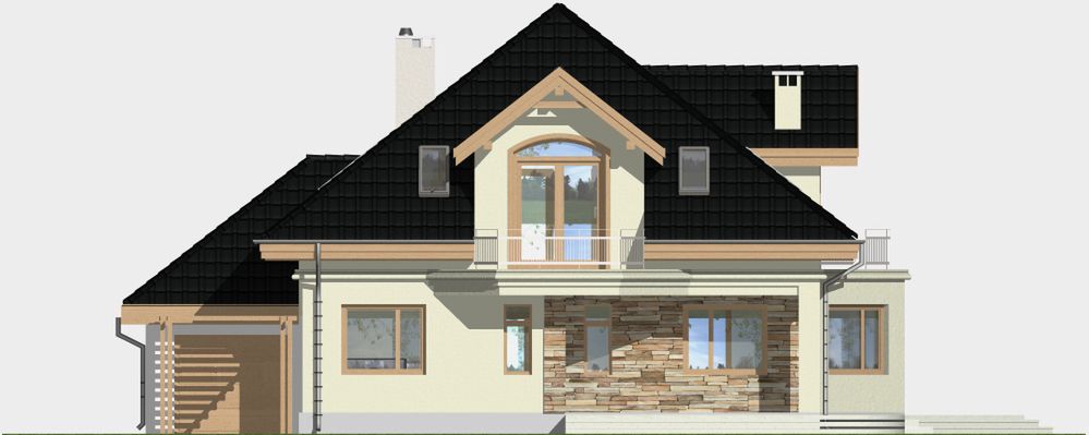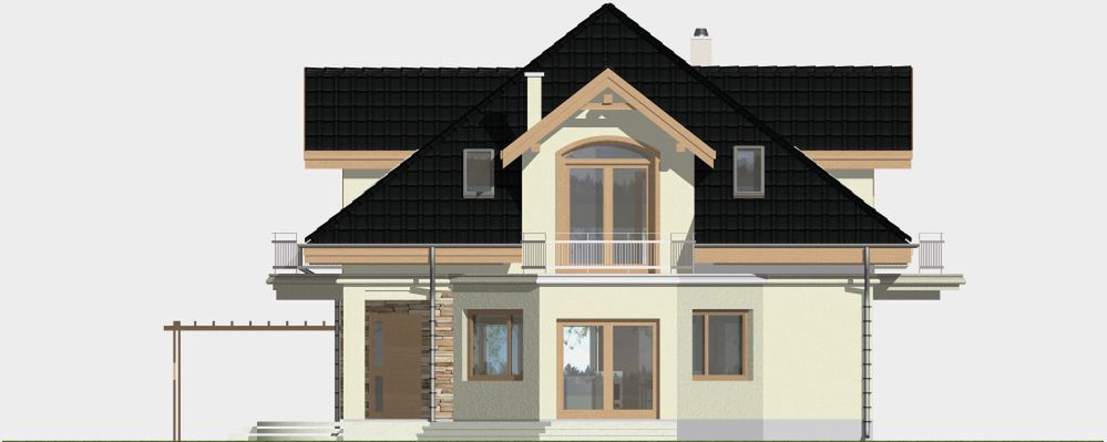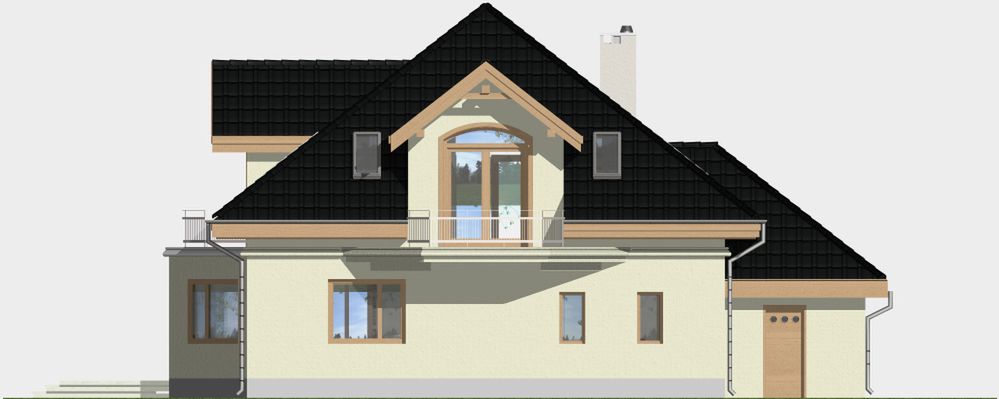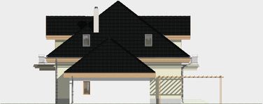 Graficzne opracowanie rzutów poglądowych widocznych na karcie projektu zostało wykonane przez Extradom.pl. Prezentowane przez Extradom.pl wizualizacje wykonane zostały przez autora projektu i należy poczytywać je jedynie za przykład i propozycję wykończenia, wizję architektoniczną autora projektu. Ostateczne wykończenie budynku może nastąpić na wiele sposobów. Szczegółowe rozwiązania zastosowane w oferowanej dokumentacji - w tym również ilość, lokalizacje i wygląd okien, drzwi, kominów - mogą w niewielkim stopniu różnić się od prezentowanej wizualizacji budynku.