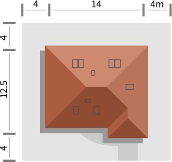 Graficzne opracowanie rzutów poglądowych widocznych na karcie projektu zostało wykonane przez Extradom.pl. Prezentowane przez Extradom.pl wizualizacje wykonane zostały przez autora projektu i należy poczytywać je jedynie za przykład i propozycję wykończenia, wizję architektoniczną autora projektu. Ostateczne wykończenie budynku może nastąpić na wiele sposobów. Szczegółowe rozwiązania zastosowane w oferowanej dokumentacji - w tym również ilość, lokalizacje i wygląd okien, drzwi, kominów - mogą w niewielkim stopniu różnić się od prezentowanej wizualizacji budynku.
