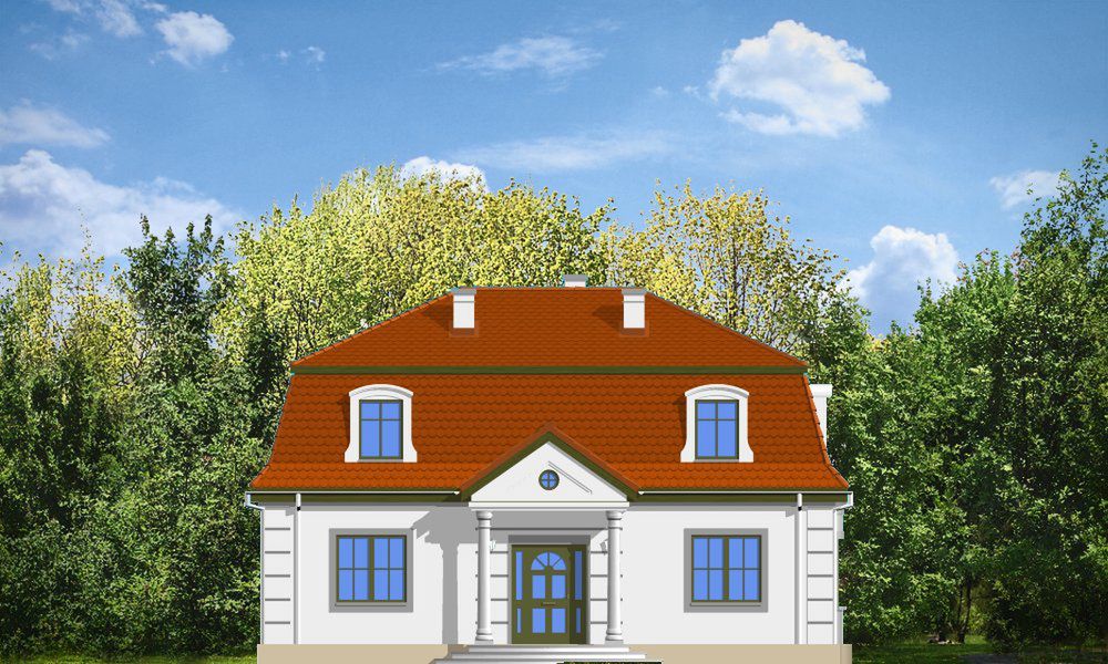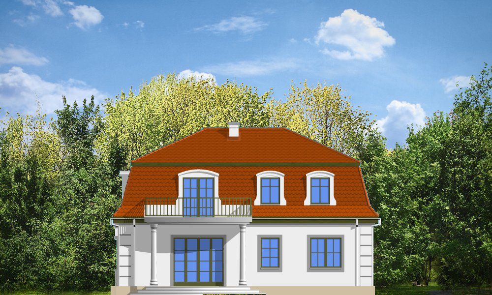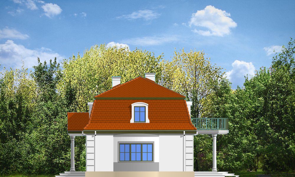 Graficzne opracowanie rzutów poglądowych widocznych na karcie projektu zostało wykonane przez Extradom.pl. Prezentowane przez Extradom.pl wizualizacje wykonane zostały przez autora projektu i należy poczytywać je jedynie za przykład i propozycję wykończenia, wizję architektoniczną autora projektu. Ostateczne wykończenie budynku może nastąpić na wiele sposobów. Szczegółowe rozwiązania zastosowane w oferowanej dokumentacji - w tym również ilość, lokalizacje i wygląd okien, drzwi, kominów - mogą w niewielkim stopniu różnić się od prezentowanej wizualizacji budynku.