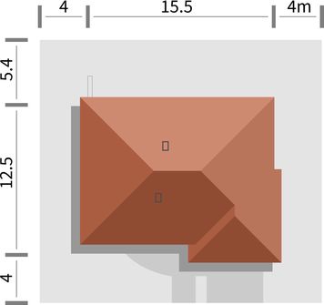 Graficzne opracowanie rzutów poglądowych widocznych na karcie projektu zostało wykonane przez Extradom.pl. Prezentowane przez Extradom.pl wizualizacje wykonane zostały przez autora projektu i należy poczytywać je jedynie za przykład i propozycję wykończenia, wizję architektoniczną autora projektu. Ostateczne wykończenie budynku może nastąpić na wiele sposobów. Szczegółowe rozwiązania zastosowane w oferowanej dokumentacji - w tym również ilość, lokalizacje i wygląd okien, drzwi, kominów - mogą w niewielkim stopniu różnić się od prezentowanej wizualizacji budynku.