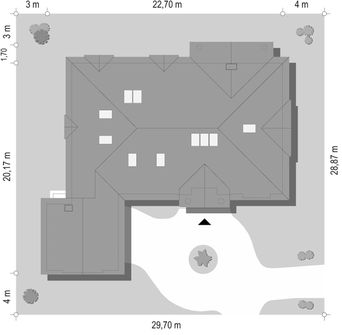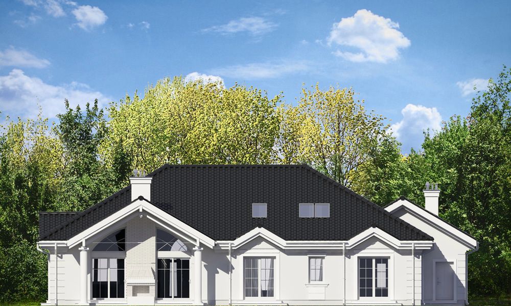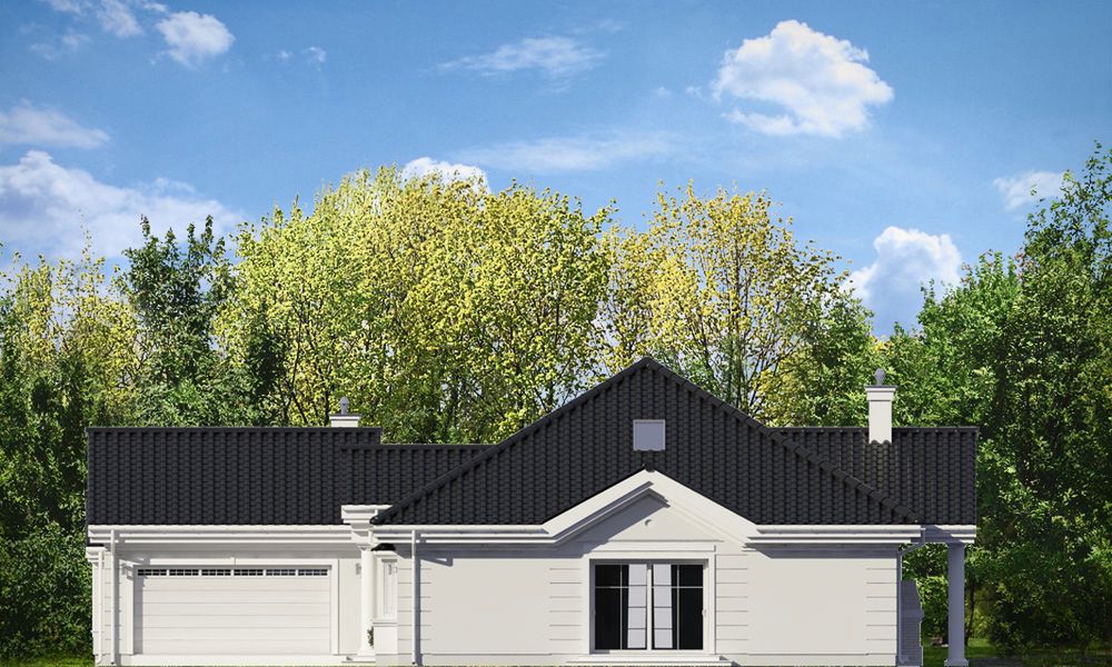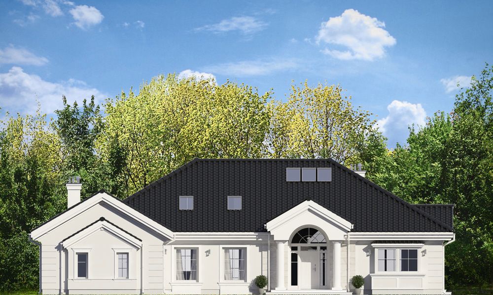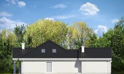 Graficzne opracowanie rzutów poglądowych widocznych na karcie projektu zostało wykonane przez Extradom.pl. Prezentowane przez Extradom.pl wizualizacje wykonane zostały przez autora projektu i należy poczytywać je jedynie za przykład i propozycję wykończenia, wizję architektoniczną autora projektu. Ostateczne wykończenie budynku może nastąpić na wiele sposobów. Szczegółowe rozwiązania zastosowane w oferowanej dokumentacji - w tym również ilość, lokalizacje i wygląd okien, drzwi, kominów - mogą w niewielkim stopniu różnić się od prezentowanej wizualizacji budynku.