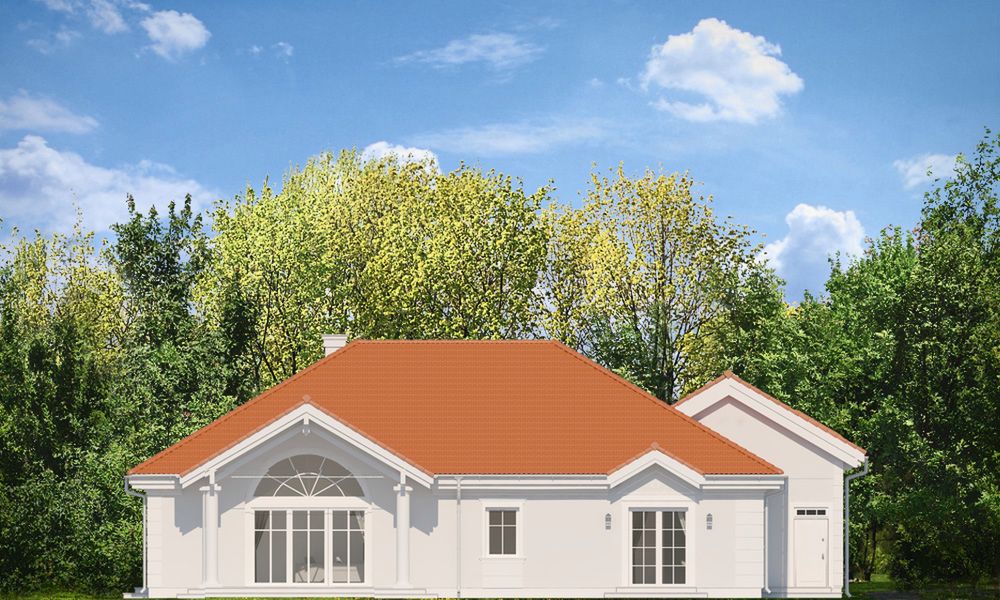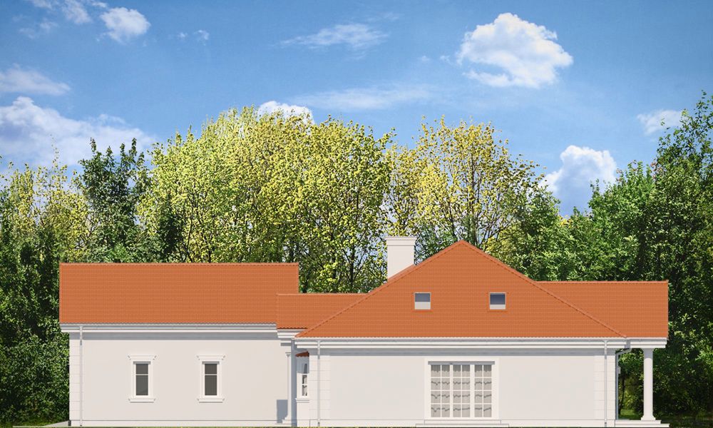 Graficzne opracowanie rzutów poglądowych widocznych na karcie projektu zostało wykonane przez Extradom.pl. Prezentowane przez Extradom.pl wizualizacje wykonane zostały przez autora projektu i należy poczytywać je jedynie za przykład i propozycję wykończenia, wizję architektoniczną autora projektu. Ostateczne wykończenie budynku może nastąpić na wiele sposobów. Szczegółowe rozwiązania zastosowane w oferowanej dokumentacji - w tym również ilość, lokalizacje i wygląd okien, drzwi, kominów - mogą w niewielkim stopniu różnić się od prezentowanej wizualizacji budynku.