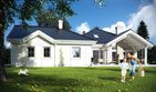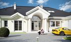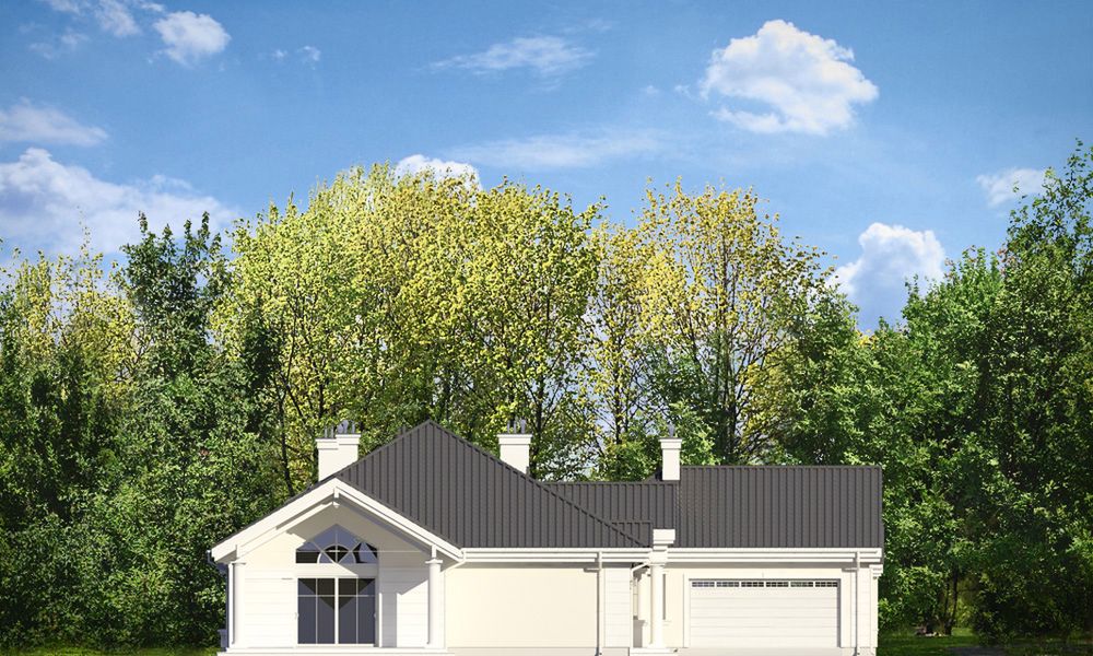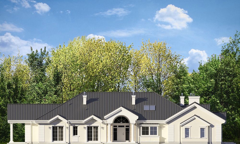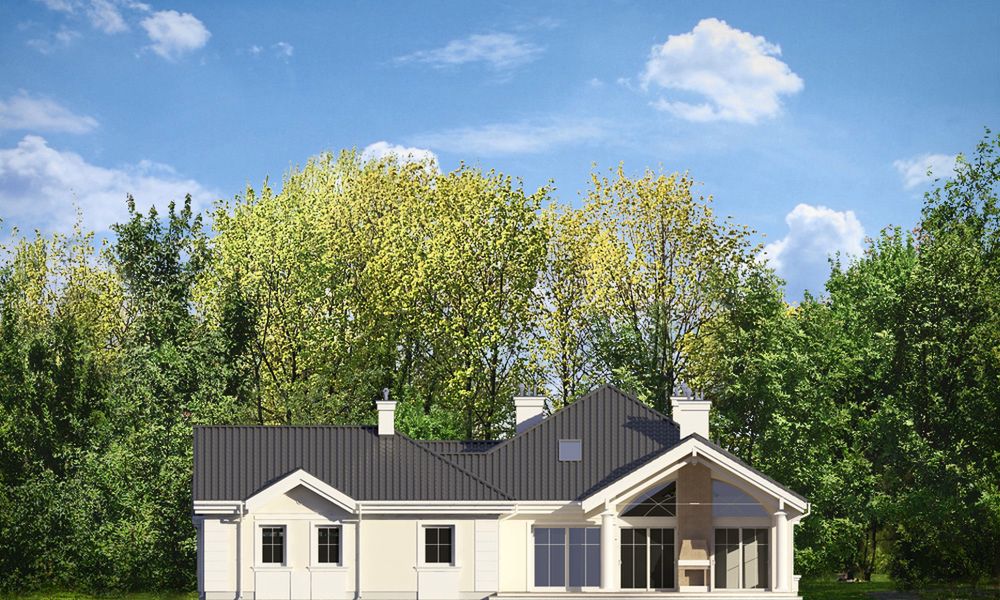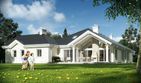 Graficzne opracowanie rzutów poglądowych widocznych na karcie projektu zostało wykonane przez Extradom.pl. Prezentowane przez Extradom.pl wizualizacje wykonane zostały przez autora projektu i należy poczytywać je jedynie za przykład i propozycję wykończenia, wizję architektoniczną autora projektu. Ostateczne wykończenie budynku może nastąpić na wiele sposobów. Szczegółowe rozwiązania zastosowane w oferowanej dokumentacji - w tym również ilość, lokalizacje i wygląd okien, drzwi, kominów - mogą w niewielkim stopniu różnić się od prezentowanej wizualizacji budynku.