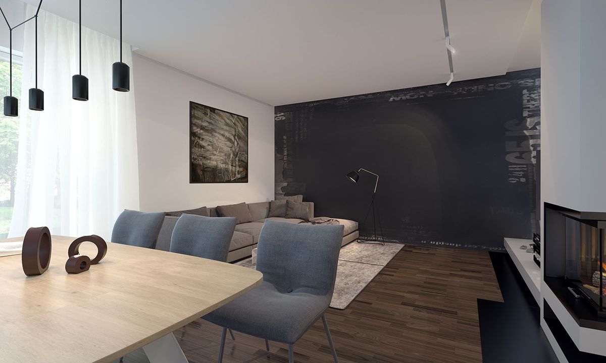 Graficzne opracowanie rzutów poglądowych widocznych na karcie projektu zostało wykonane przez Extradom.pl. Prezentowane przez Extradom.pl wizualizacje wykonane zostały przez autora projektu i należy poczytywać je jedynie za przykład i propozycję wykończenia, wizję architektoniczną autora projektu. Ostateczne wykończenie budynku może nastąpić na wiele sposobów. Szczegółowe rozwiązania zastosowane w oferowanej dokumentacji - w tym również ilość, lokalizacje i wygląd okien, drzwi, kominów - mogą w niewielkim stopniu różnić się od prezentowanej wizualizacji budynku.