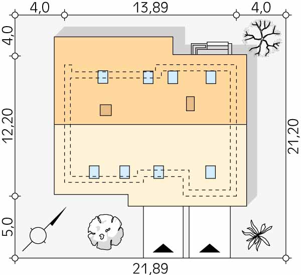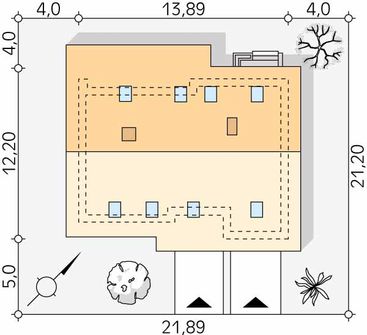 Graficzne opracowanie rzutów poglądowych widocznych na karcie projektu zostało wykonane przez Extradom.pl. Prezentowane przez Extradom.pl wizualizacje wykonane zostały przez autora projektu i należy poczytywać je jedynie za przykład i propozycję wykończenia, wizję architektoniczną autora projektu. Ostateczne wykończenie budynku może nastąpić na wiele sposobów. Szczegółowe rozwiązania zastosowane w oferowanej dokumentacji - w tym również ilość, lokalizacje i wygląd okien, drzwi, kominów - mogą w niewielkim stopniu różnić się od prezentowanej wizualizacji budynku.