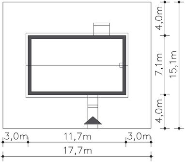 Graficzne opracowanie rzutów poglądowych widocznych na karcie projektu zostało wykonane przez Extradom.pl. Prezentowane przez Extradom.pl wizualizacje wykonane zostały przez autora projektu i należy poczytywać je jedynie za przykład i propozycję wykończenia, wizję architektoniczną autora projektu. Ostateczne wykończenie budynku może nastąpić na wiele sposobów. Szczegółowe rozwiązania zastosowane w oferowanej dokumentacji - w tym również ilość, lokalizacje i wygląd okien, drzwi, kominów - mogą w niewielkim stopniu różnić się od prezentowanej wizualizacji budynku.