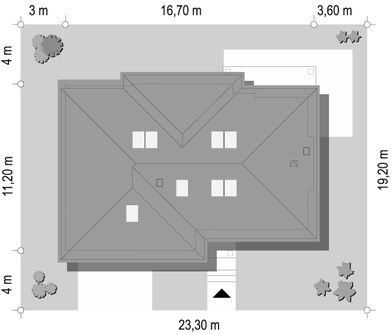 Graficzne opracowanie rzutów poglądowych widocznych na karcie projektu zostało wykonane przez Extradom.pl. Prezentowane przez Extradom.pl wizualizacje wykonane zostały przez autora projektu i należy poczytywać je jedynie za przykład i propozycję wykończenia, wizję architektoniczną autora projektu. Ostateczne wykończenie budynku może nastąpić na wiele sposobów. Szczegółowe rozwiązania zastosowane w oferowanej dokumentacji - w tym również ilość, lokalizacje i wygląd okien, drzwi, kominów - mogą w niewielkim stopniu różnić się od prezentowanej wizualizacji budynku.