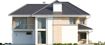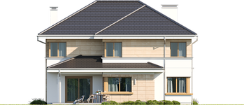 Graficzne opracowanie rzutów poglądowych widocznych na karcie projektu zostało wykonane przez Extradom.pl. Prezentowane przez Extradom.pl wizualizacje wykonane zostały przez autora projektu i należy poczytywać je jedynie za przykład i propozycję wykończenia, wizję architektoniczną autora projektu. Ostateczne wykończenie budynku może nastąpić na wiele sposobów. Szczegółowe rozwiązania zastosowane w oferowanej dokumentacji - w tym również ilość, lokalizacje i wygląd okien, drzwi, kominów - mogą w niewielkim stopniu różnić się od prezentowanej wizualizacji budynku.