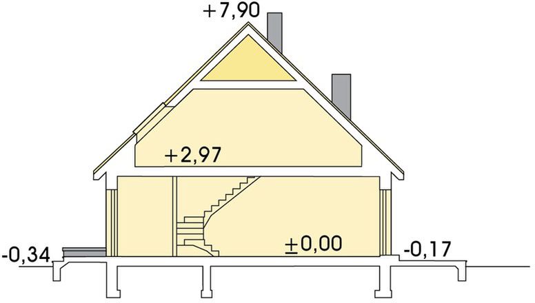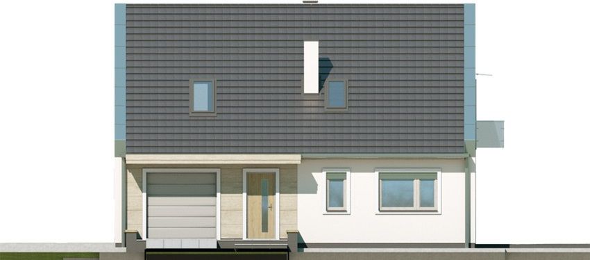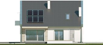 Graficzne opracowanie rzutów poglądowych widocznych na karcie projektu zostało wykonane przez Extradom.pl. Prezentowane przez Extradom.pl wizualizacje wykonane zostały przez autora projektu i należy poczytywać je jedynie za przykład i propozycję wykończenia, wizję architektoniczną autora projektu. Ostateczne wykończenie budynku może nastąpić na wiele sposobów. Szczegółowe rozwiązania zastosowane w oferowanej dokumentacji - w tym również ilość, lokalizacje i wygląd okien, drzwi, kominów - mogą w niewielkim stopniu różnić się od prezentowanej wizualizacji budynku.
