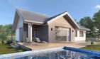 Graficzne opracowanie rzutów poglądowych widocznych na karcie projektu zostało wykonane przez Extradom.pl. Prezentowane przez Extradom.pl wizualizacje wykonane zostały przez autora projektu i należy poczytywać je jedynie za przykład i propozycję wykończenia, wizję architektoniczną autora projektu. Ostateczne wykończenie budynku może nastąpić na wiele sposobów. Szczegółowe rozwiązania zastosowane w oferowanej dokumentacji - w tym również ilość, lokalizacje i wygląd okien, drzwi, kominów - mogą w niewielkim stopniu różnić się od prezentowanej wizualizacji budynku.