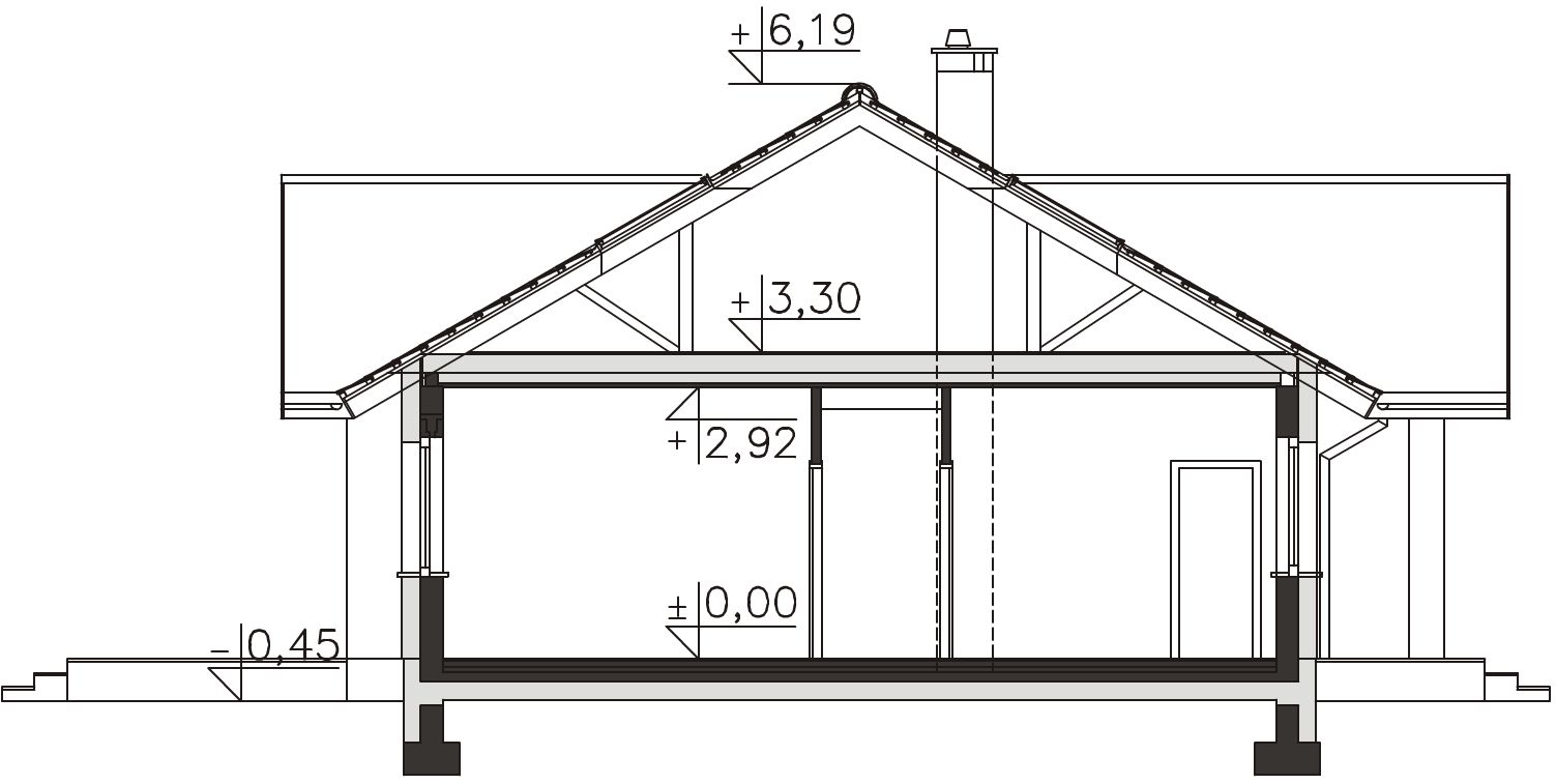 Fundamenty - rozwiązanie o podwyższonej izolacji termicznej. Ściany zewnętrzne - Bloczek betonu komórkowego 24 cm + styropian 20 cm. Dach - wiązary prefabrykowane. Ogrzewanie - c.o. grzejnikowe + c.w.u. - kocioł gazowy. Wentylacja - rekuperacja.