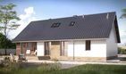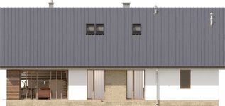 Graficzne opracowanie rzutów poglądowych widocznych na karcie projektu zostało wykonane przez Extradom.pl. Prezentowane przez Extradom.pl wizualizacje wykonane zostały przez autora projektu i należy poczytywać je jedynie za przykład i propozycję wykończenia, wizję architektoniczną autora projektu. Ostateczne wykończenie budynku może nastąpić na wiele sposobów. Szczegółowe rozwiązania zastosowane w oferowanej dokumentacji - w tym również ilość, lokalizacje i wygląd okien, drzwi, kominów - mogą w niewielkim stopniu różnić się od prezentowanej wizualizacji budynku.