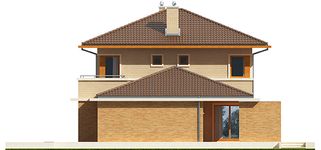 Graficzne opracowanie rzutów poglądowych widocznych na karcie projektu zostało wykonane przez Extradom.pl. Prezentowane przez Extradom.pl wizualizacje wykonane zostały przez autora projektu i należy poczytywać je jedynie za przykład i propozycję wykończenia, wizję architektoniczną autora projektu. Ostateczne wykończenie budynku może nastąpić na wiele sposobów. Szczegółowe rozwiązania zastosowane w oferowanej dokumentacji - w tym również ilość, lokalizacje i wygląd okien, drzwi, kominów - mogą w niewielkim stopniu różnić się od prezentowanej wizualizacji budynku.