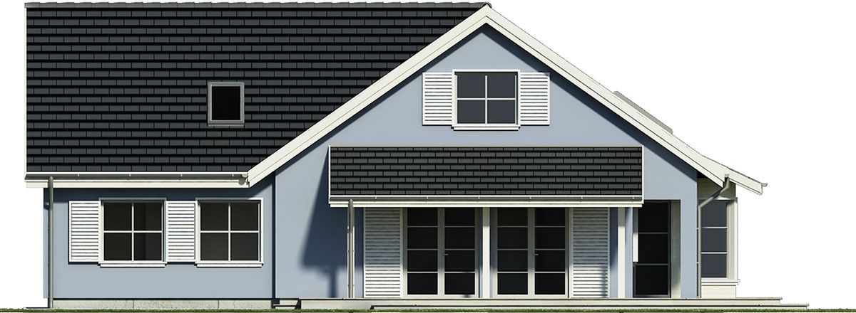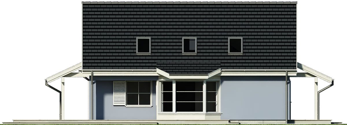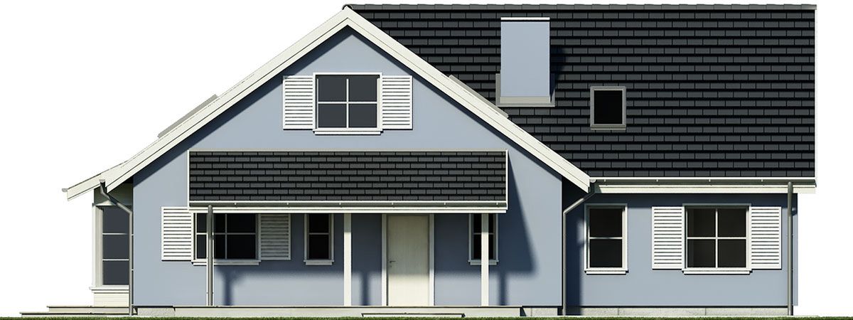 Graficzne opracowanie rzutów poglądowych widocznych na karcie projektu zostało wykonane przez Extradom.pl. Prezentowane przez Extradom.pl wizualizacje wykonane zostały przez autora projektu i należy poczytywać je jedynie za przykład i propozycję wykończenia, wizję architektoniczną autora projektu. Ostateczne wykończenie budynku może nastąpić na wiele sposobów. Szczegółowe rozwiązania zastosowane w oferowanej dokumentacji - w tym również ilość, lokalizacje i wygląd okien, drzwi, kominów - mogą w niewielkim stopniu różnić się od prezentowanej wizualizacji budynku.