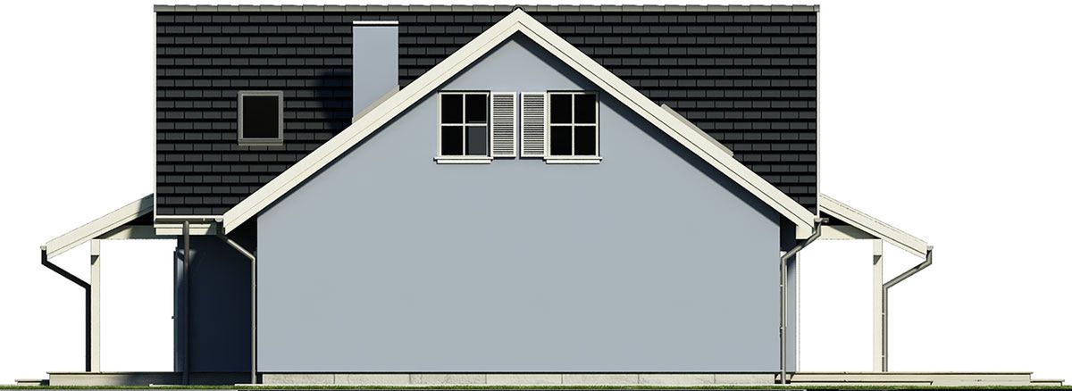 Graficzne opracowanie rzutów poglądowych widocznych na karcie projektu zostało wykonane przez Extradom.pl. Prezentowane przez Extradom.pl wizualizacje wykonane zostały przez autora projektu i należy poczytywać je jedynie za przykład i propozycję wykończenia, wizję architektoniczną autora projektu. Ostateczne wykończenie budynku może nastąpić na wiele sposobów. Szczegółowe rozwiązania zastosowane w oferowanej dokumentacji - w tym również ilość, lokalizacje i wygląd okien, drzwi, kominów - mogą w niewielkim stopniu różnić się od prezentowanej wizualizacji budynku.