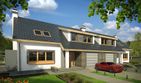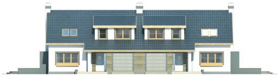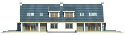 Graficzne opracowanie rzutów poglądowych widocznych na karcie projektu zostało wykonane przez Extradom.pl. Prezentowane przez Extradom.pl wizualizacje wykonane zostały przez autora projektu i należy poczytywać je jedynie za przykład i propozycję wykończenia, wizję architektoniczną autora projektu. Ostateczne wykończenie budynku może nastąpić na wiele sposobów. Szczegółowe rozwiązania zastosowane w oferowanej dokumentacji - w tym również ilość, lokalizacje i wygląd okien, drzwi, kominów - mogą w niewielkim stopniu różnić się od prezentowanej wizualizacji budynku.