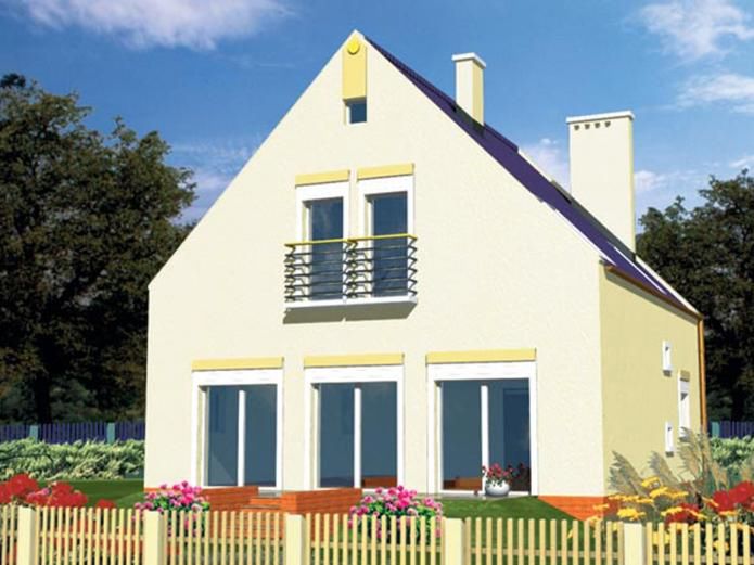 Graficzne opracowanie rzutów poglądowych widocznych na karcie projektu zostało wykonane przez Extradom.pl. Prezentowane przez Extradom.pl wizualizacje wykonane zostały przez autora projektu i należy poczytywać je jedynie za przykład i propozycję wykończenia, wizję architektoniczną autora projektu. Ostateczne wykończenie budynku może nastąpić na wiele sposobów. Szczegółowe rozwiązania zastosowane w oferowanej dokumentacji - w tym również ilość, lokalizacje i wygląd okien, drzwi, kominów - mogą w niewielkim stopniu różnić się od prezentowanej wizualizacji budynku.