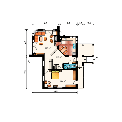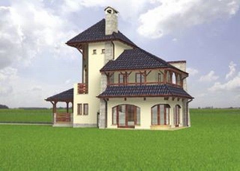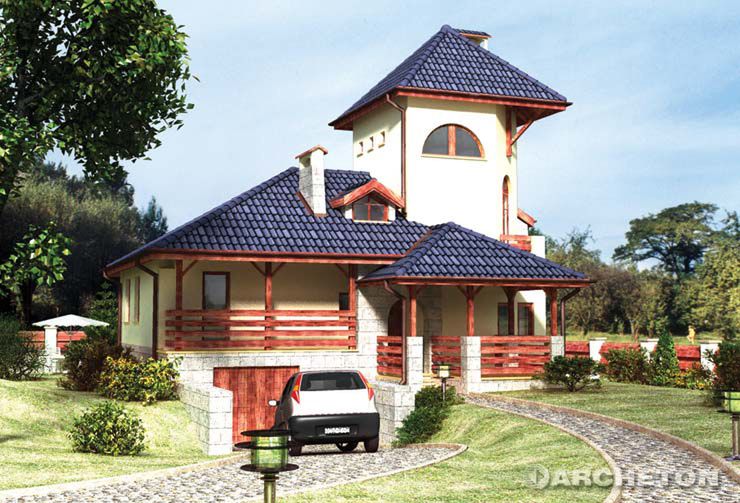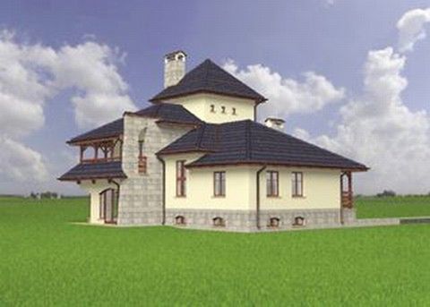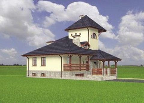 Graficzne opracowanie rzutów poglądowych widocznych na karcie projektu zostało wykonane przez Extradom.pl. Prezentowane przez Extradom.pl wizualizacje wykonane zostały przez autora projektu i należy poczytywać je jedynie za przykład i propozycję wykończenia, wizję architektoniczną autora projektu. Ostateczne wykończenie budynku może nastąpić na wiele sposobów. Szczegółowe rozwiązania zastosowane w oferowanej dokumentacji - w tym również ilość, lokalizacje i wygląd okien, drzwi, kominów - mogą w niewielkim stopniu różnić się od prezentowanej wizualizacji budynku.