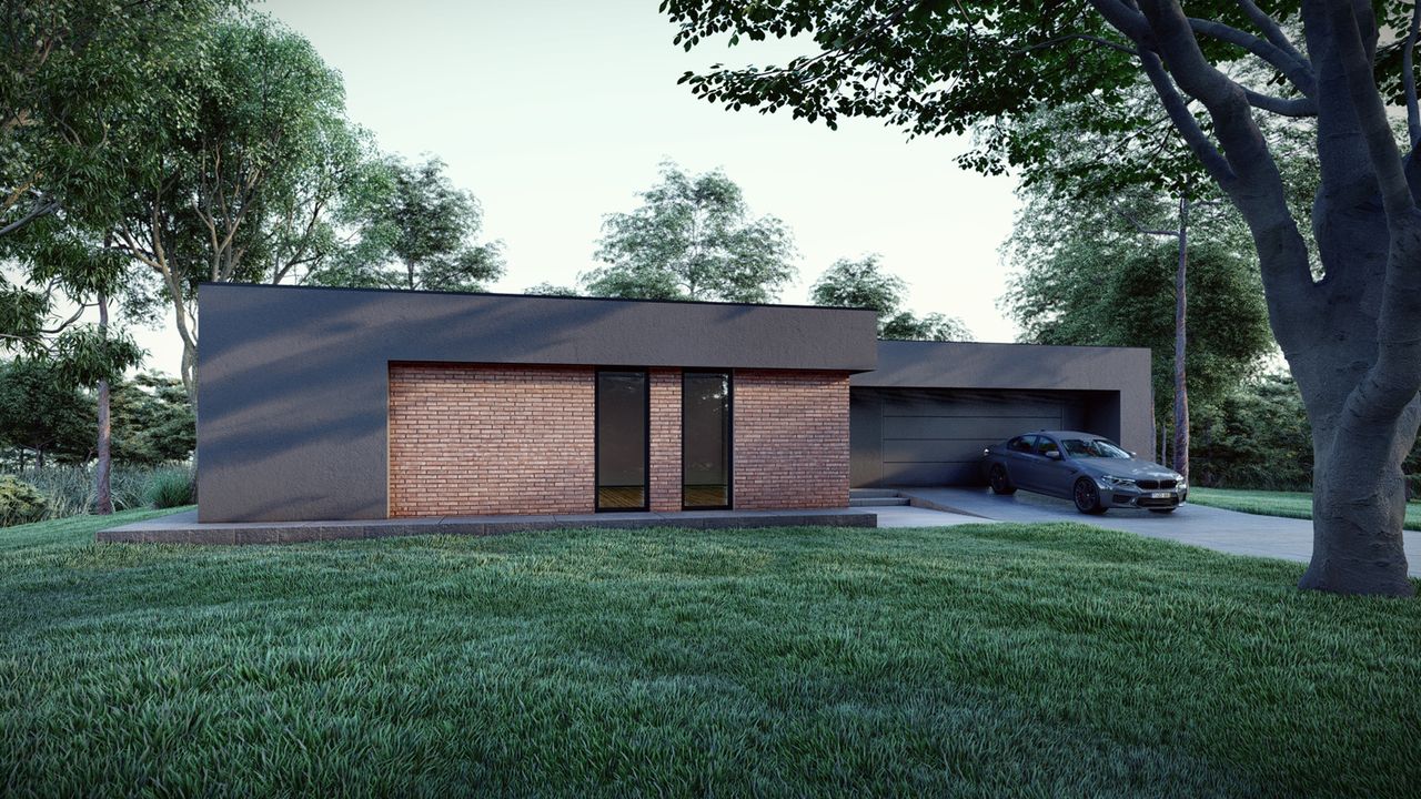 Graficzne opracowanie rzutów poglądowych widocznych na karcie projektu zostało wykonane przez Extradom.pl. Prezentowane przez Extradom.pl wizualizacje wykonane zostały przez autora projektu i należy poczytywać je jedynie za przykład i propozycję wykończenia, wizję architektoniczną autora projektu. Ostateczne wykończenie budynku może nastąpić na wiele sposobów. Szczegółowe rozwiązania zastosowane w oferowanej dokumentacji - w tym również ilość, lokalizacje i wygląd okien, drzwi, kominów - mogą w niewielkim stopniu różnić się od prezentowanej wizualizacji budynku.