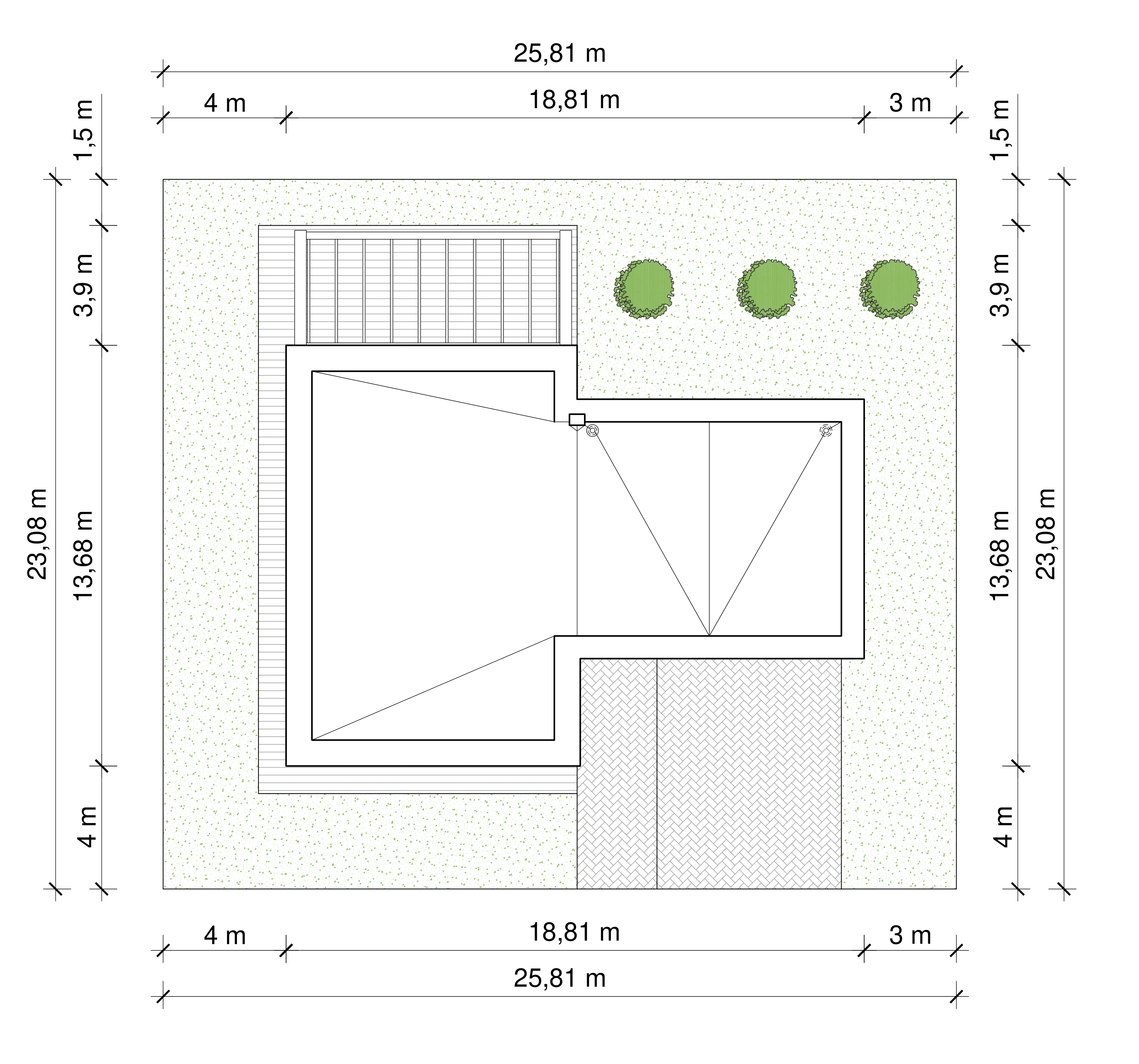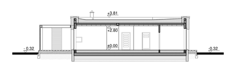 Fundamenty Bezpośrednie, na płycie fundamentowej Ściany zewnętrzne Bloczki z betonu komórkowego H+H gr. 24 cm + styropian gr. 25 cm i 35 cm Ściany wewnętrzne Nośne - bloczki z betonu komórkowego H+H 24 cm Działowe - bloczki z betonu komórkowego H+H 12 cm lub cegła kratówka 12 cm Strop Płyta żelbetowa gr. 18 cm Elewacje Tynk silikonowy na siatce, okładzina elewacyjna drewnopodobna, okładzina z płytek klinkierowych Pokrycie dachu Membrana pcv, blacha stalowa ocynkowana gr. 0,55 mm Konstrukcja dachu Stropodach - płyta żelbetowa gr. 18 cm