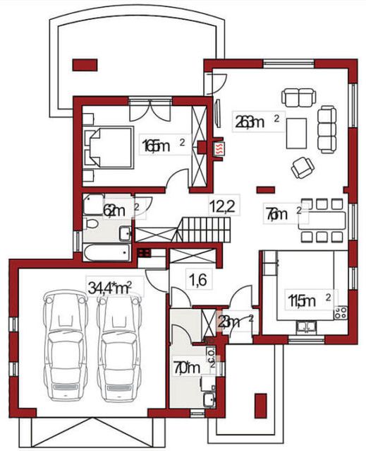 Graficzne opracowanie rzutów poglądowych widocznych na karcie projektu zostało wykonane przez Extradom.pl. Prezentowane przez Extradom.pl wizualizacje wykonane zostały przez autora projektu i należy poczytywać je jedynie za przykład i propozycję wykończenia, wizję architektoniczną autora projektu. Ostateczne wykończenie budynku może nastąpić na wiele sposobów. Szczegółowe rozwiązania zastosowane w oferowanej dokumentacji - w tym również ilość, lokalizacje i wygląd okien, drzwi, kominów - mogą w niewielkim stopniu różnić się od prezentowanej wizualizacji budynku.