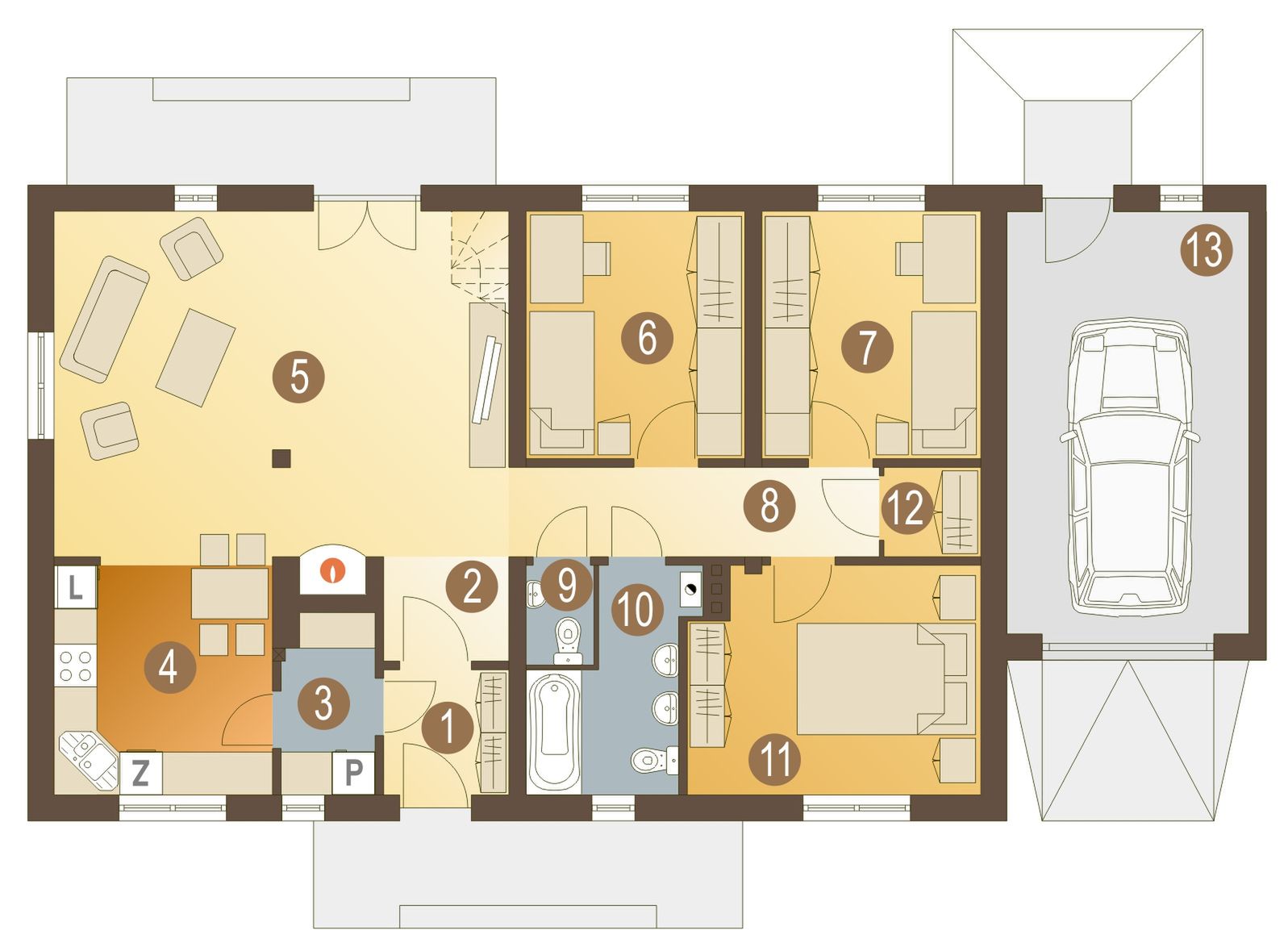 Róża z garażem 1-st. [A] WRF1025