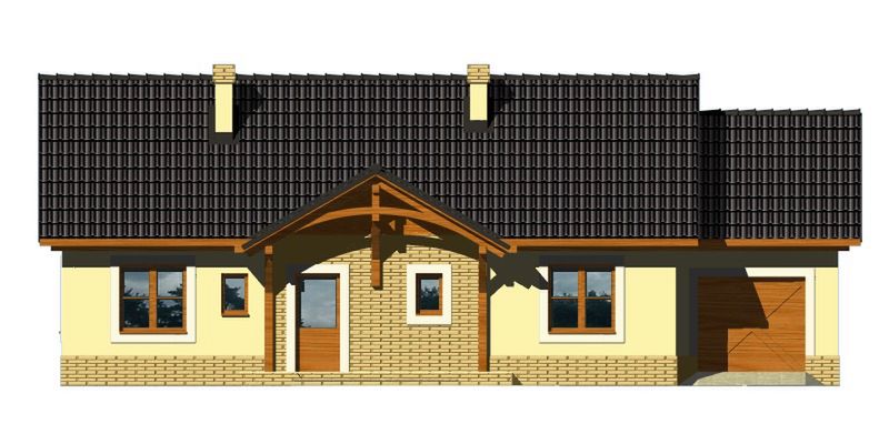Graficzne opracowanie rzutów poglądowych widocznych na karcie projektu zostało wykonane przez Extradom.pl. Prezentowane przez Extradom.pl wizualizacje wykonane zostały przez autora projektu i należy poczytywać je jedynie za przykład i propozycję wykończenia, wizję architektoniczną autora projektu. Ostateczne wykończenie budynku może nastąpić na wiele sposobów. Szczegółowe rozwiązania zastosowane w oferowanej dokumentacji - w tym również ilość, lokalizacje i wygląd okien, drzwi, kominów - mogą w niewielkim stopniu różnić się od prezentowanej wizualizacji budynku.