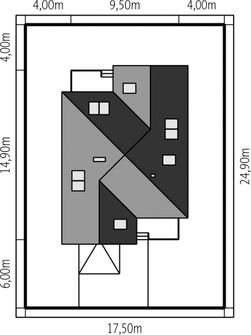 Bryła budynku zwieńczona wielospadowym dachem o konstrukcji drewnianej krytym dachówką cementową lub ceramiczną. Dom zaprojektowano w technologii murowej ze stropem gestożebrowym. Schody wewnętrzne drewniane. Elewacja wykonana z tynku mineralnego. Stolarka okienna drewniana. Okna połaciowe.