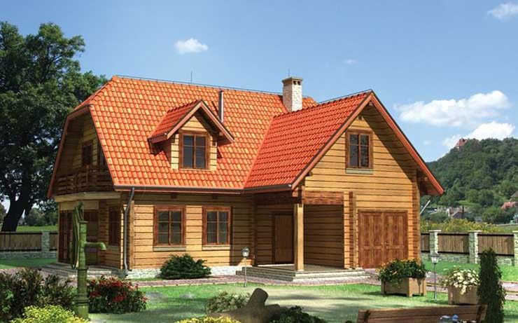Technologia i konstrukcja: bal drewniany. Ściany zewnętrzne: bale drewniane gr. 160 mm + ocieplenie z wełny mineralnej Knauf Insulation + wykończenie. Ściany wewnętrzne: konstrukcyjne: bale drewniane gr. 160 mm, szkieletowe drewniane; działowe: szkieletowe drewniane docieplone produktami firmy Knauf Insulation. Strop: drewniane, docieplony produktami firmy Knauf Insulation. Konstrukcja dachu: tradycyjna drewniana, docieplonie dachu produktami firmy Knauf Insulation. Rodzaj schodów: drewniane. Typ ogrzewania: kocioł na gaz. Pokrycie dachu: dachówka ceramiczna. Elewacja: podmurówka: okładzina z betonowego kamienia elewacyjnego.