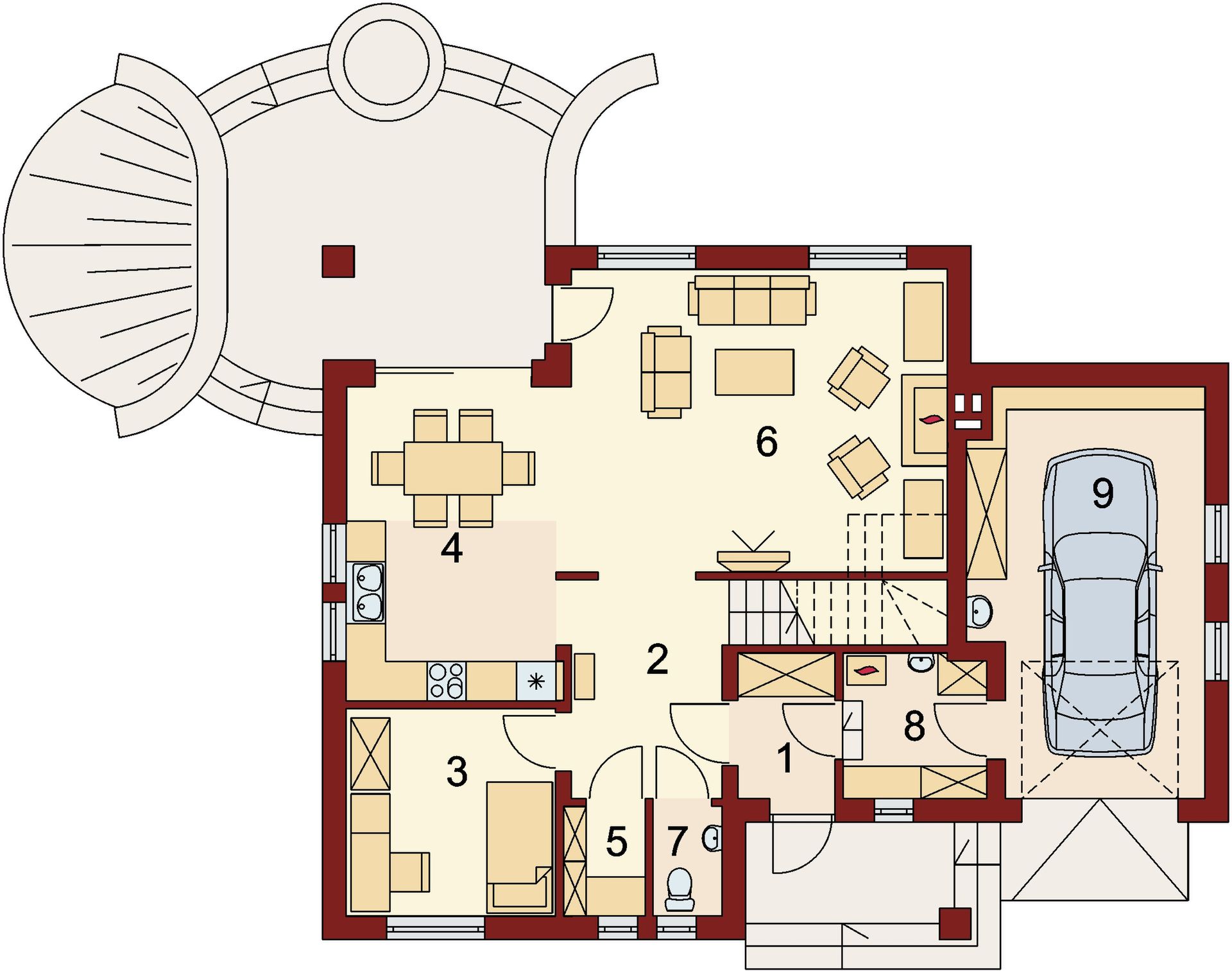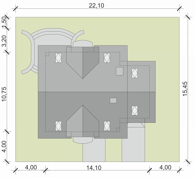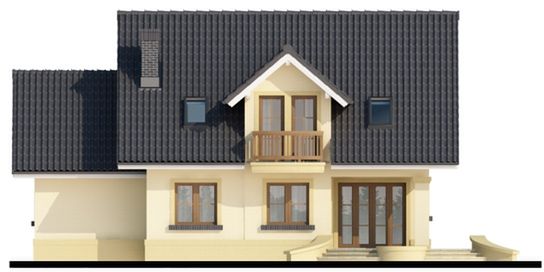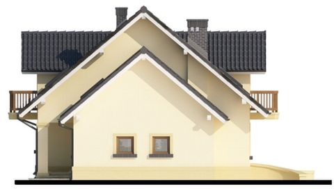 Graficzne opracowanie rzutów poglądowych widocznych na karcie projektu zostało wykonane przez Extradom.pl. Prezentowane przez Extradom.pl wizualizacje wykonane zostały przez autora projektu i należy poczytywać je jedynie za przykład i propozycję wykończenia, wizję architektoniczną autora projektu. Ostateczne wykończenie budynku może nastąpić na wiele sposobów. Szczegółowe rozwiązania zastosowane w oferowanej dokumentacji - w tym również ilość, lokalizacje i wygląd okien, drzwi, kominów - mogą w niewielkim stopniu różnić się od prezentowanej wizualizacji budynku.