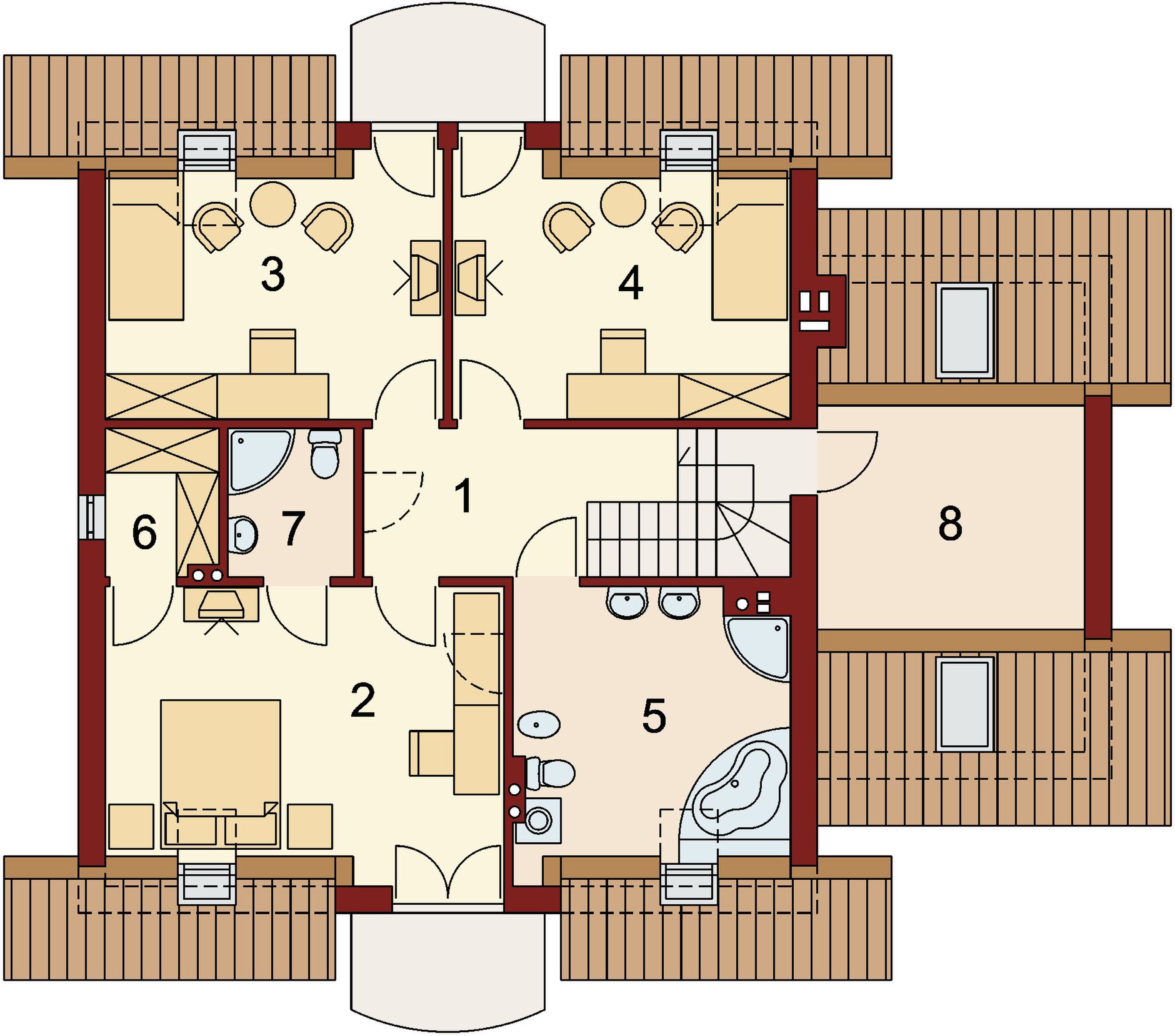 Wybraliśmy projekt domu Rozeta WRW1005, ponieważ spodobał nam się jego wygląd zewnętrzny oraz układ pomieszczeń był taki, na jakim nam zależało. Chcieliśmy, aby w naszym domu balkony były umieszczone na północ i południe. Budowa przebiegła bardzo sprawnie, nie mieliśmy żądnych większych problemów z fachowcami, ani też dotyczących projektu domu Rozeta WRW1005. Zdecydowaliśmy się na piec gazowy i jesteśmy zadowoleni z kosztów. Teraz będziemy mieszkać drugą zimę, to zobaczymy, czy coś się zmieni, bo poprzednia była bardzo ciepła, więc i koszty były niewielkie. Wprowadziliśmy niewielkie zmiany, aby dostosować projekt do naszych potrzeb. Zrezygnowaliśmy ze spiżarni na dole na rzecz większej łazienki, zlikwidowaliśmy górną łazienkę i powiększyliśmy garderobę. Żadnych więcej modyfikacji nie wprowadzaliśmy, cała reszta domu nam odpowiadała. Z perspektywy czasu myślę, że warto zmienić usytuowanie kominka. Ggdy jest na tej samej ścianie co w projekcie, a telewizor znajduje się na ścianie obok schodów, to słońce na niego pada i musimy zasłaniać roletyNie mamy zastrzeżeń co do układu pomieszczeń, jednak po zlikwidowaniu spiżarni brakuje nam takiego pomieszczenia. Kotłownia i garaż mogłyby być trochę większe i wtedy byłoby już idealnie. Moja rodzina liczy trzy osoby, a więc dom jest wystarczająco duży. Dzięki temu, że salon mamy od południa, to cała strefa dzienna zawsze jest bardzo jasna. Najbardziej jesteśmy zadowoleni, że wszystko poszło po naszej myśli, tak, jak sobie założyliśmy. Cały układ jest bardzo dobrze i funkcjonalnie przemyślany. Nawet większa ilość gości zmieści się bez problemu. To był to bardzo dobry wybór i projekt domu parterowego z poddaszem użytkowym Rozeta WRW1005 jest godny polecenia. Pozdrawiam.