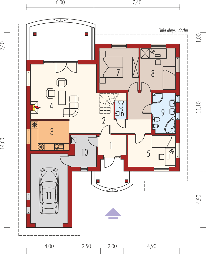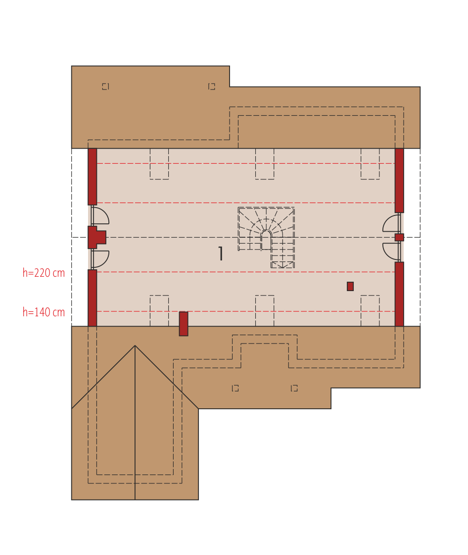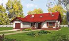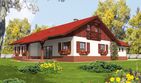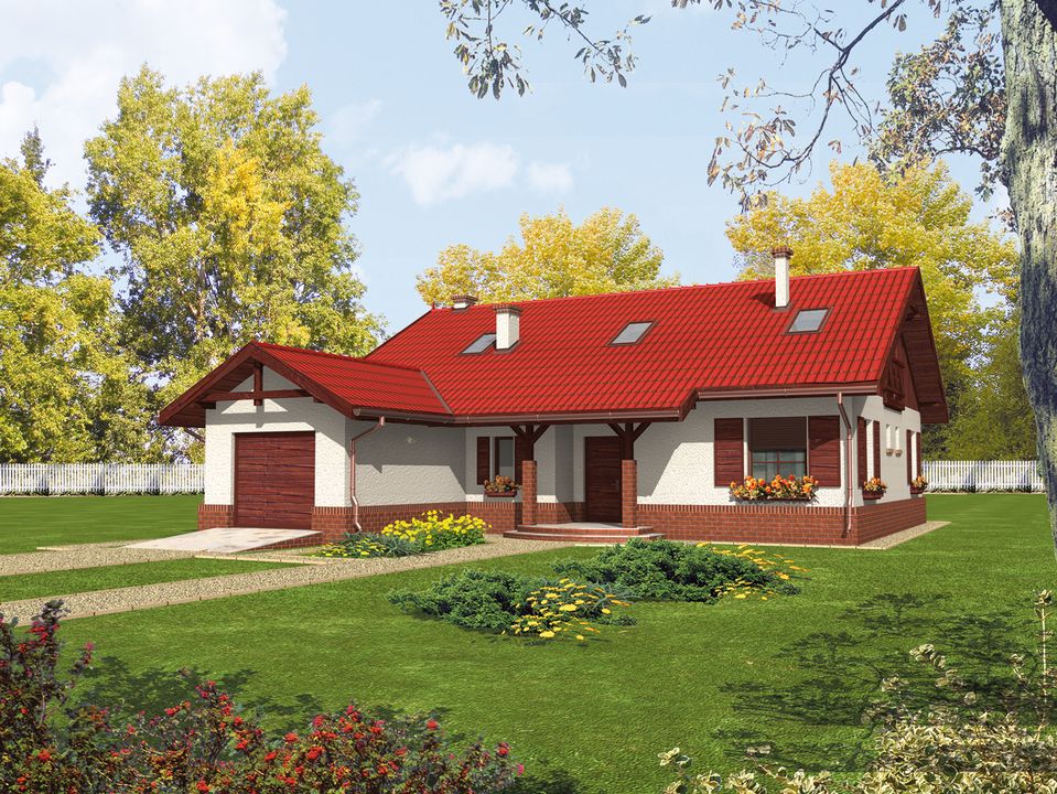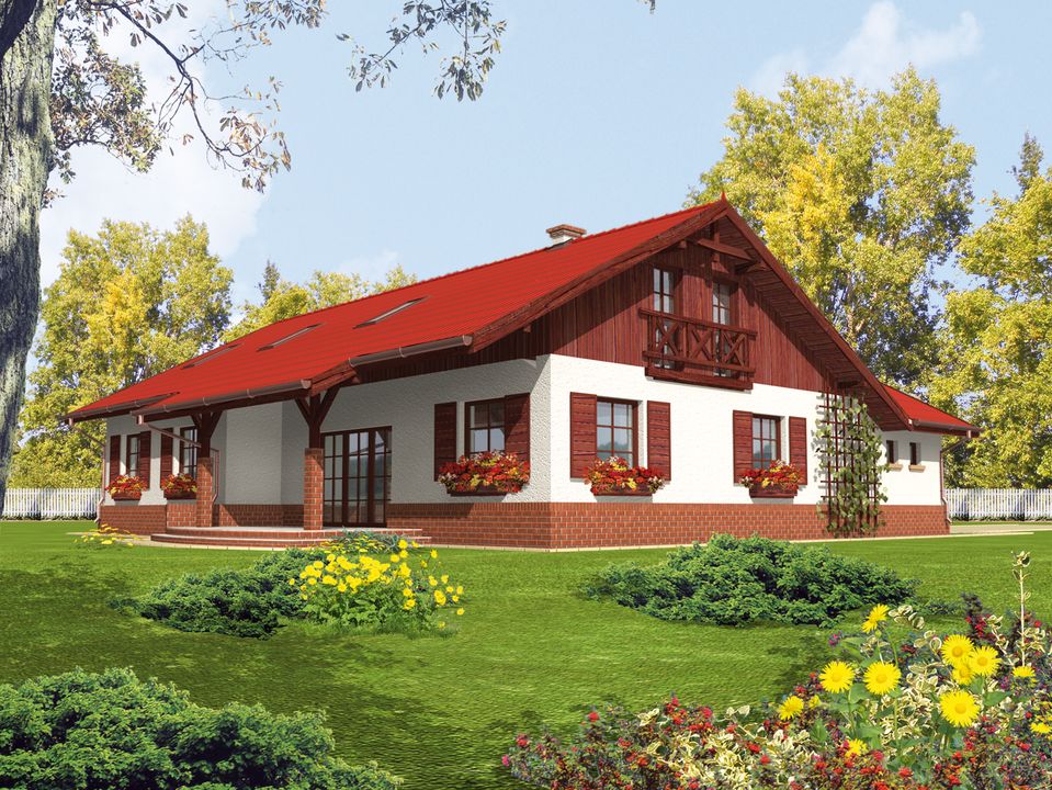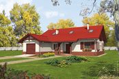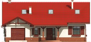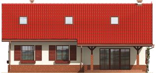 Graficzne opracowanie rzutów poglądowych widocznych na karcie projektu zostało wykonane przez Extradom.pl. Prezentowane przez Extradom.pl wizualizacje wykonane zostały przez autora projektu i należy poczytywać je jedynie za przykład i propozycję wykończenia, wizję architektoniczną autora projektu. Ostateczne wykończenie budynku może nastąpić na wiele sposobów. Szczegółowe rozwiązania zastosowane w oferowanej dokumentacji - w tym również ilość, lokalizacje i wygląd okien, drzwi, kominów - mogą w niewielkim stopniu różnić się od prezentowanej wizualizacji budynku.