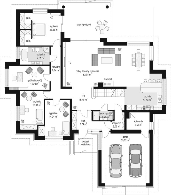 PROJEKT Z BUDOWĄ Istnieje możliwość zaadaptowania tego projektu do technologii prefabrykowanej/modułowej i budowy nawet w 6 miesięcy ze stałym kosztem budowy