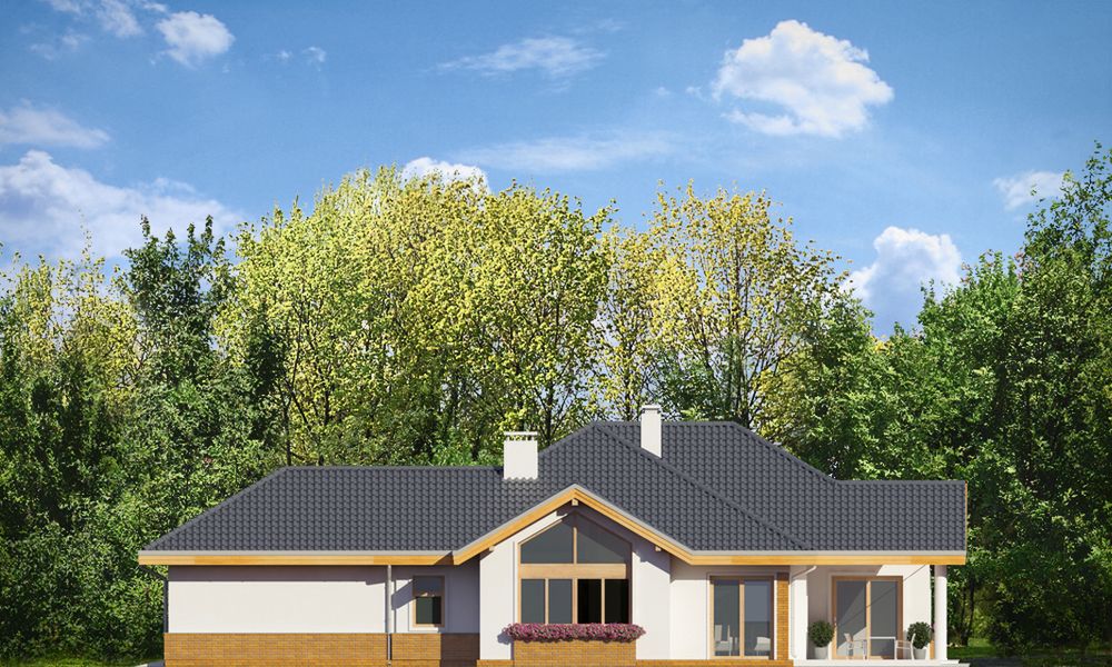 Graficzne opracowanie rzutów poglądowych widocznych na karcie projektu zostało wykonane przez Extradom.pl. Prezentowane przez Extradom.pl wizualizacje wykonane zostały przez autora projektu i należy poczytywać je jedynie za przykład i propozycję wykończenia, wizję architektoniczną autora projektu. Ostateczne wykończenie budynku może nastąpić na wiele sposobów. Szczegółowe rozwiązania zastosowane w oferowanej dokumentacji - w tym również ilość, lokalizacje i wygląd okien, drzwi, kominów - mogą w niewielkim stopniu różnić się od prezentowanej wizualizacji budynku.
