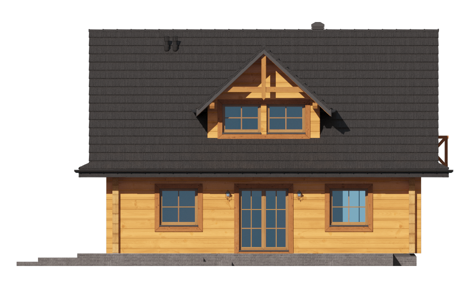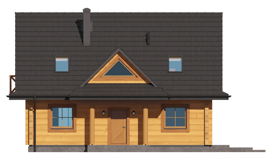 Graficzne opracowanie rzutów poglądowych widocznych na karcie projektu zostało wykonane przez Extradom.pl. Prezentowane przez Extradom.pl wizualizacje wykonane zostały przez autora projektu i należy poczytywać je jedynie za przykład i propozycję wykończenia, wizję architektoniczną autora projektu. Ostateczne wykończenie budynku może nastąpić na wiele sposobów. Szczegółowe rozwiązania zastosowane w oferowanej dokumentacji - w tym również ilość, lokalizacje i wygląd okien, drzwi, kominów - mogą w niewielkim stopniu różnić się od prezentowanej wizualizacji budynku.