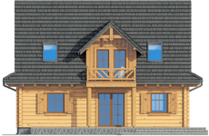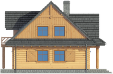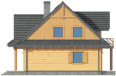 Wysokość ścianki kolankowej: 0.87 m. Ilość drewna na więźbę: 8.97 m³. Strop: drewniany. Pokrycie dachu: dachówka gontopodobna z posypką Gerard Corona. Ściany zewnętrzne: płazy drewniane + wełna mineralna + deska. Ściany wewnętrzne: płazy drewniane. Typ ogrzewania: kocioł gazowy lub kocioł na paliwo stałe. Inne: okna połaciowe Fakro.